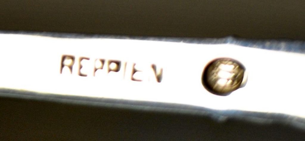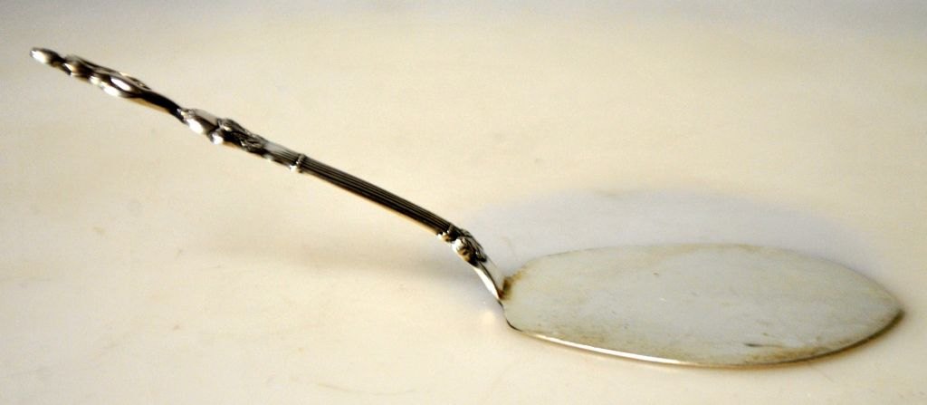 Reppien sølv spatel, 1952, Skanderborg, Danmark. Skaft med stående nøgen kvinde. Stemplet. L.: 15 cm. Vægt.: 30 gram.Perfekt stand!