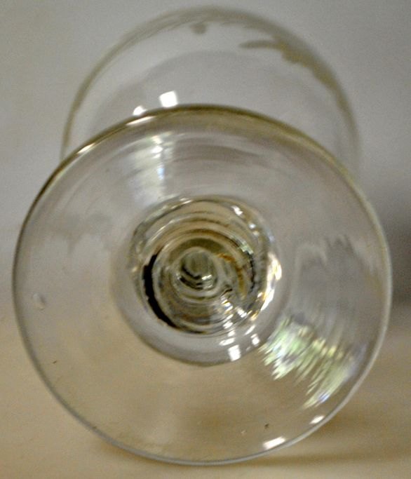 Vinglas med egeløvs slibninger, 19. årh. Stilk med knap. Slibninger med 6 blade og 6 agern foroven og forneden. H.: 11,2 cm.Emne nummer: 28262
