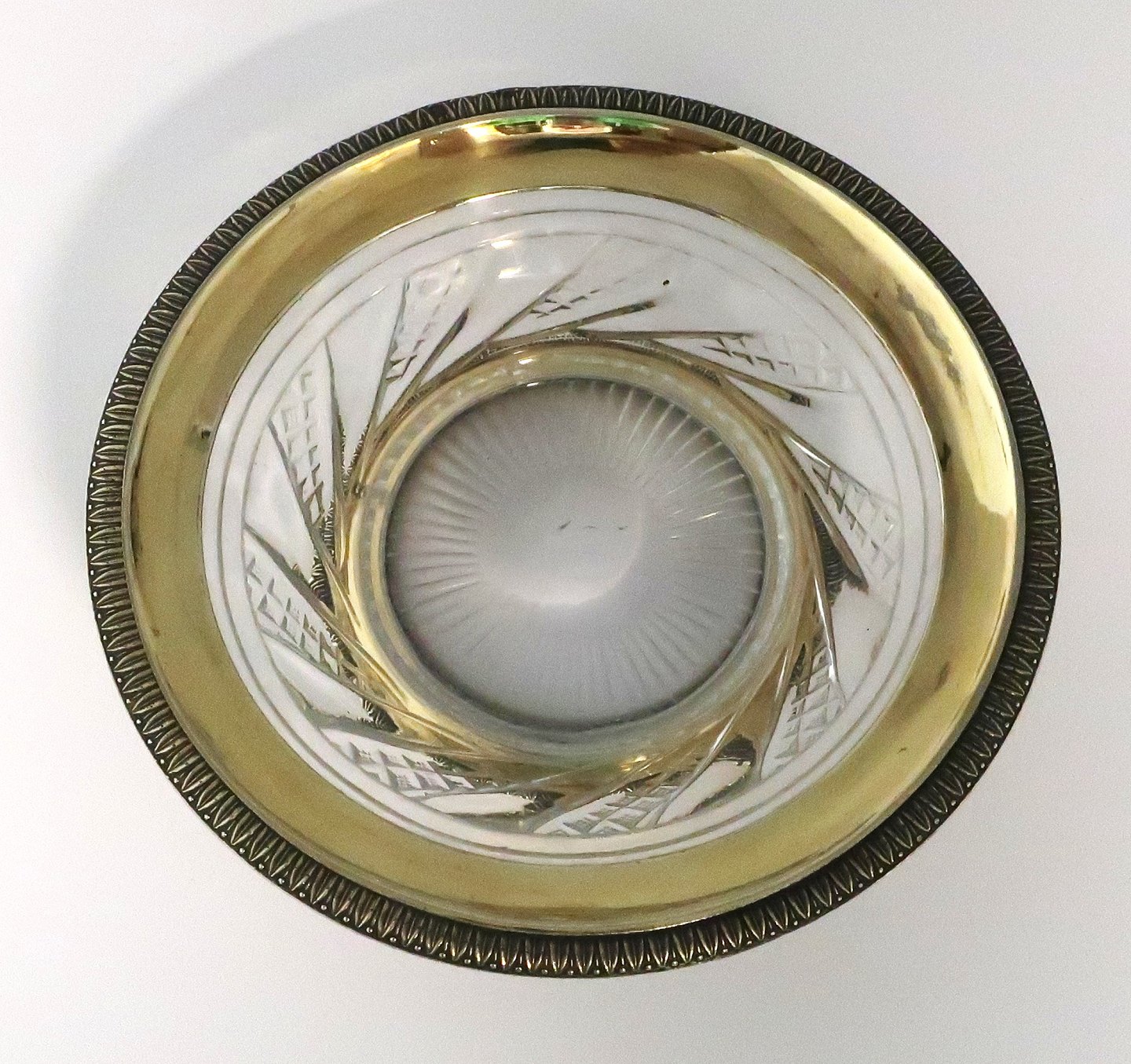 Fransk kop af krystal med sølv forgyldt montering. Kop og underkop. Højde 13 cm. Mindre kantafslag på undersiden af kop. Udstiller