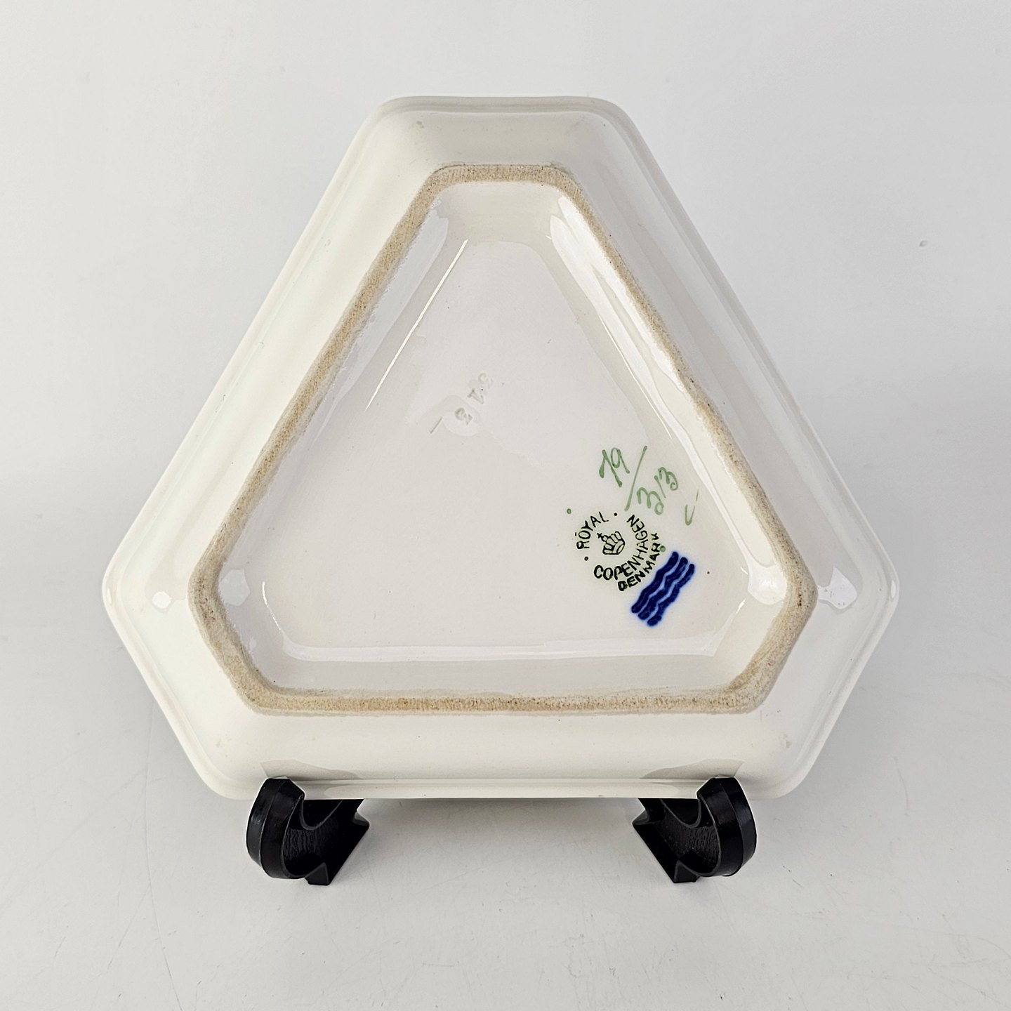 Trekantet fad i kongeligt porcelæn fra stellet Det spanske stel.Nr. 79/313 underflad til salt, peber og sennep.