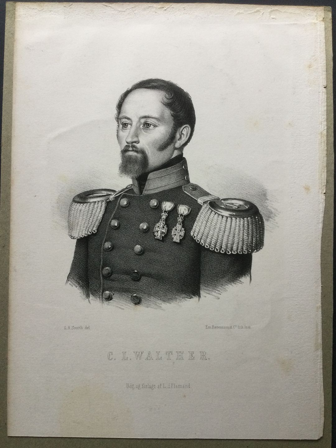 Litografi af Em. Bærentzen - Portræt af Oberts Christian Lauritz von Walther.