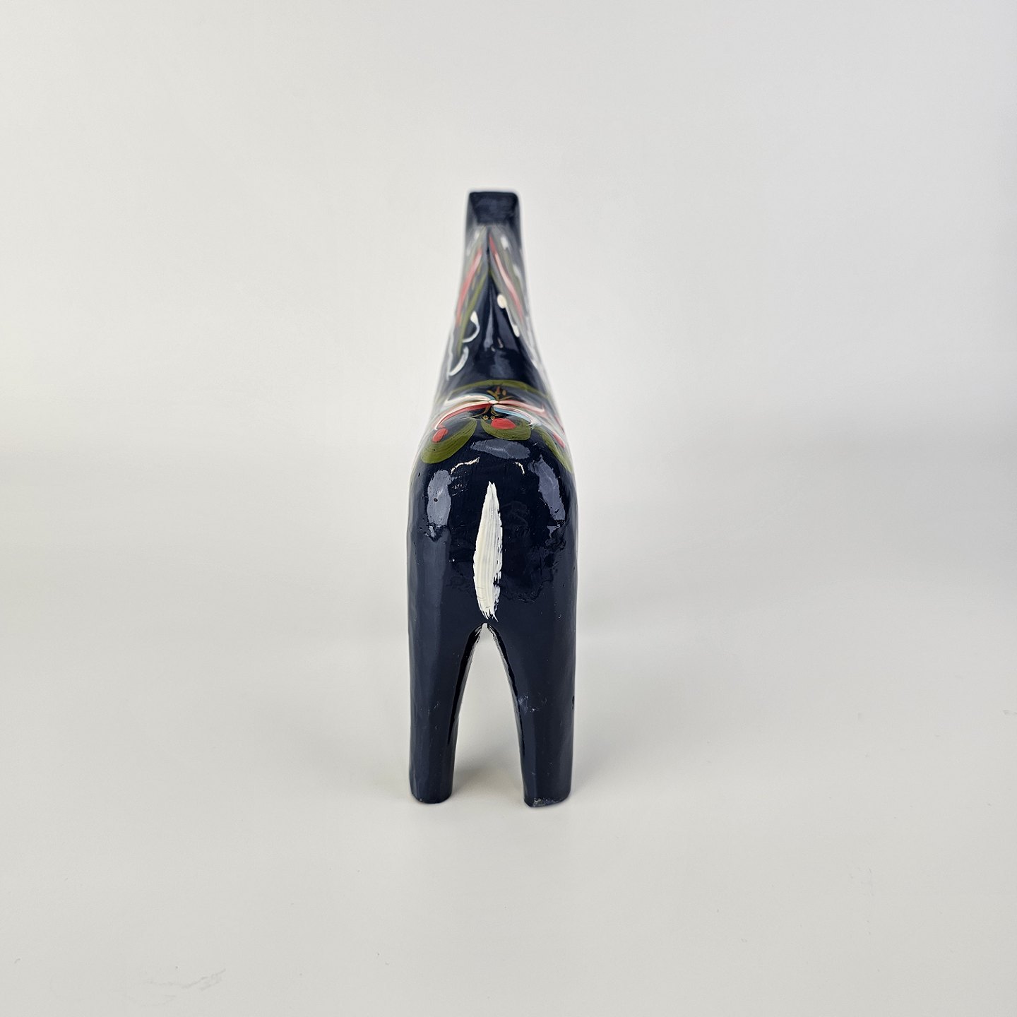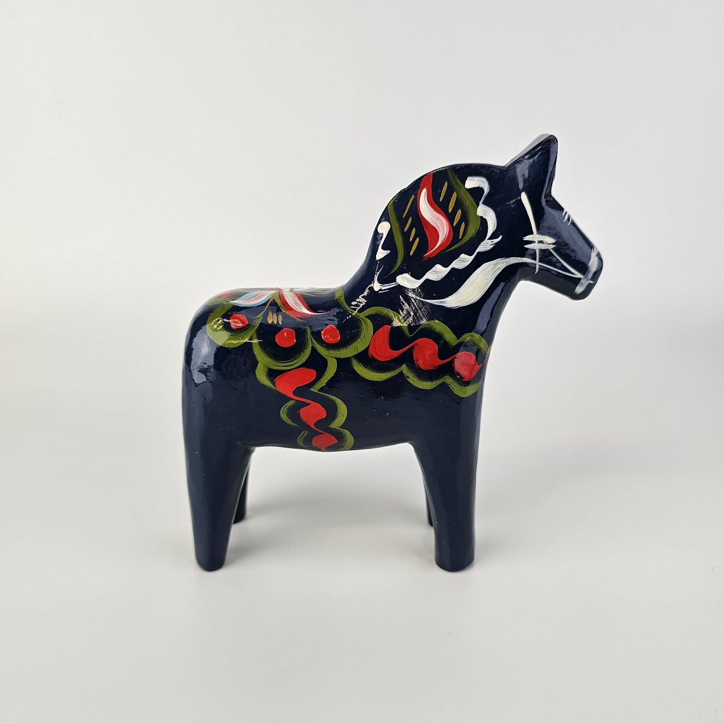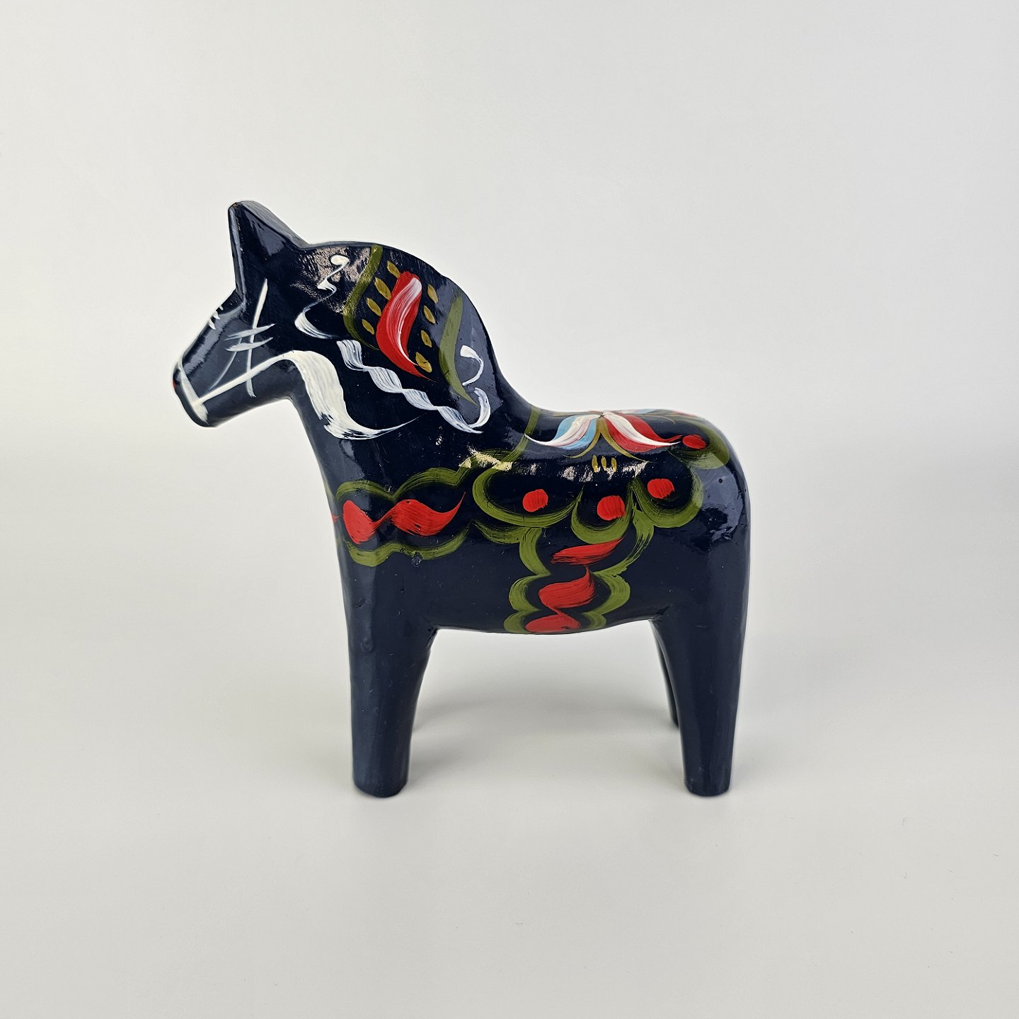Figur af blå Dalarhest i malet og lakeret træFremstillet i Sverige