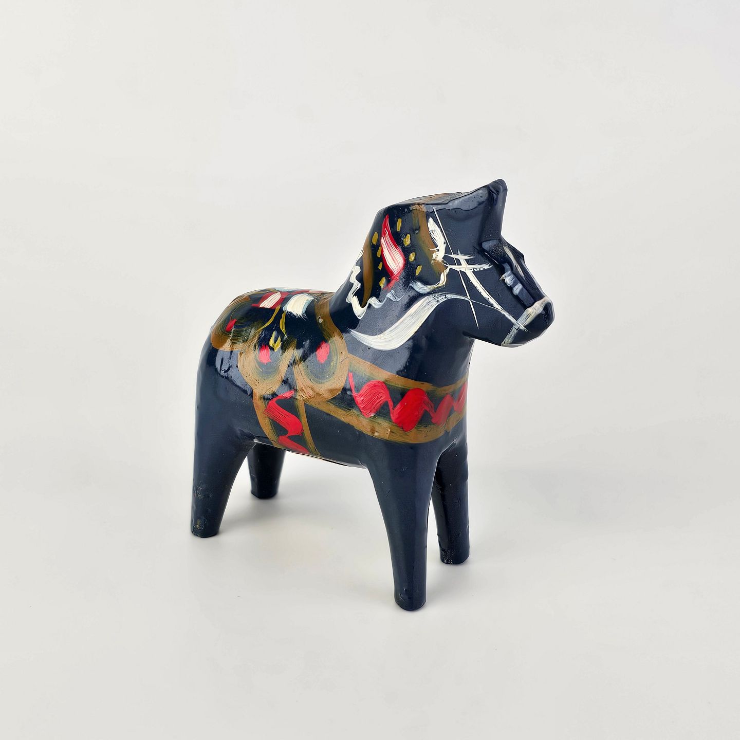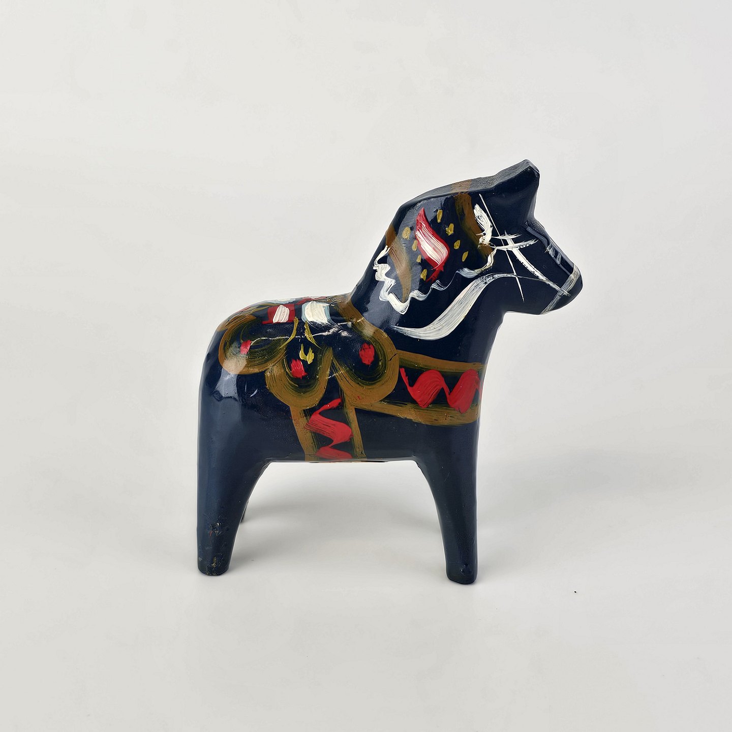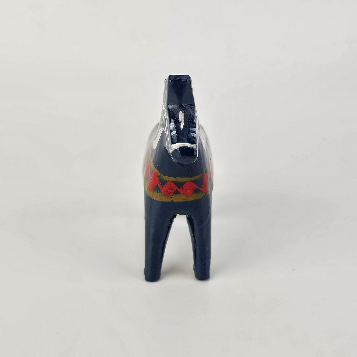 Figur af blå Dalarhest i malet og lakeret træFremstillet i Sverige