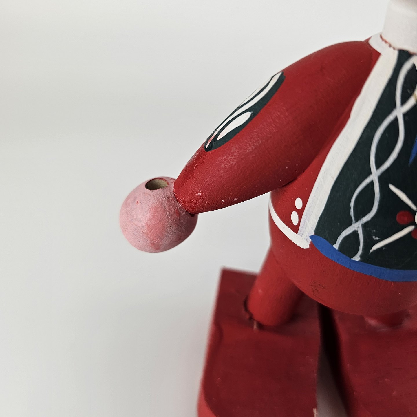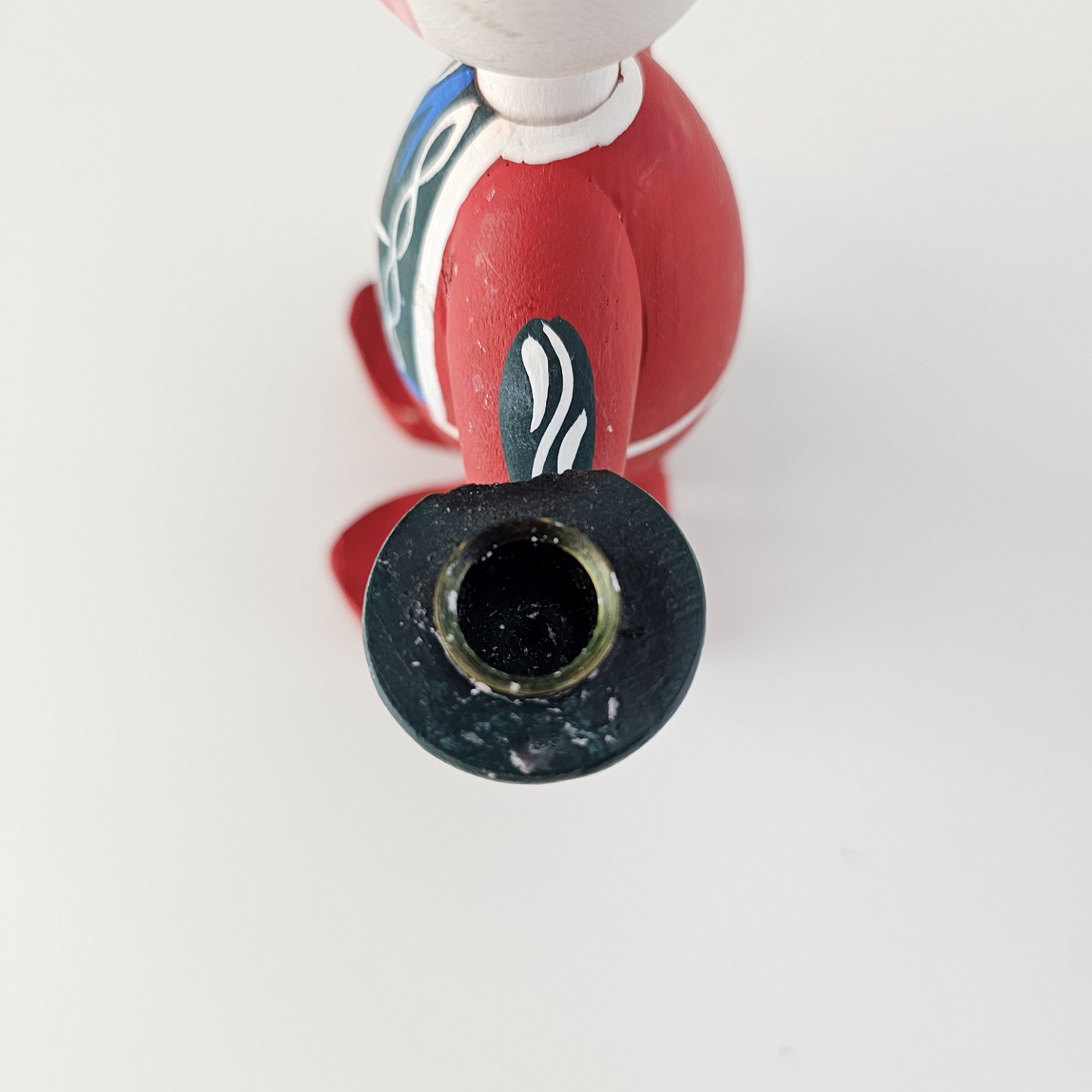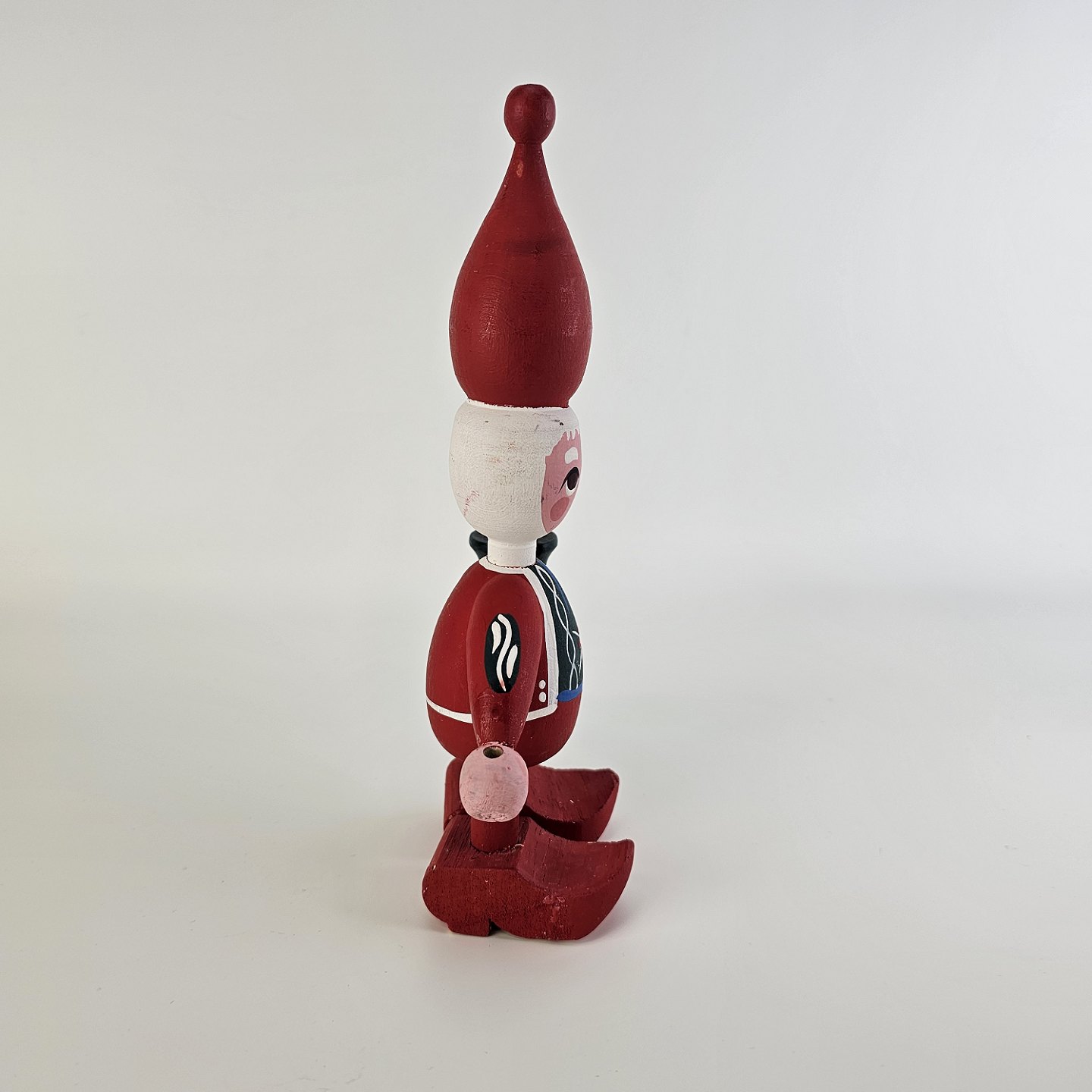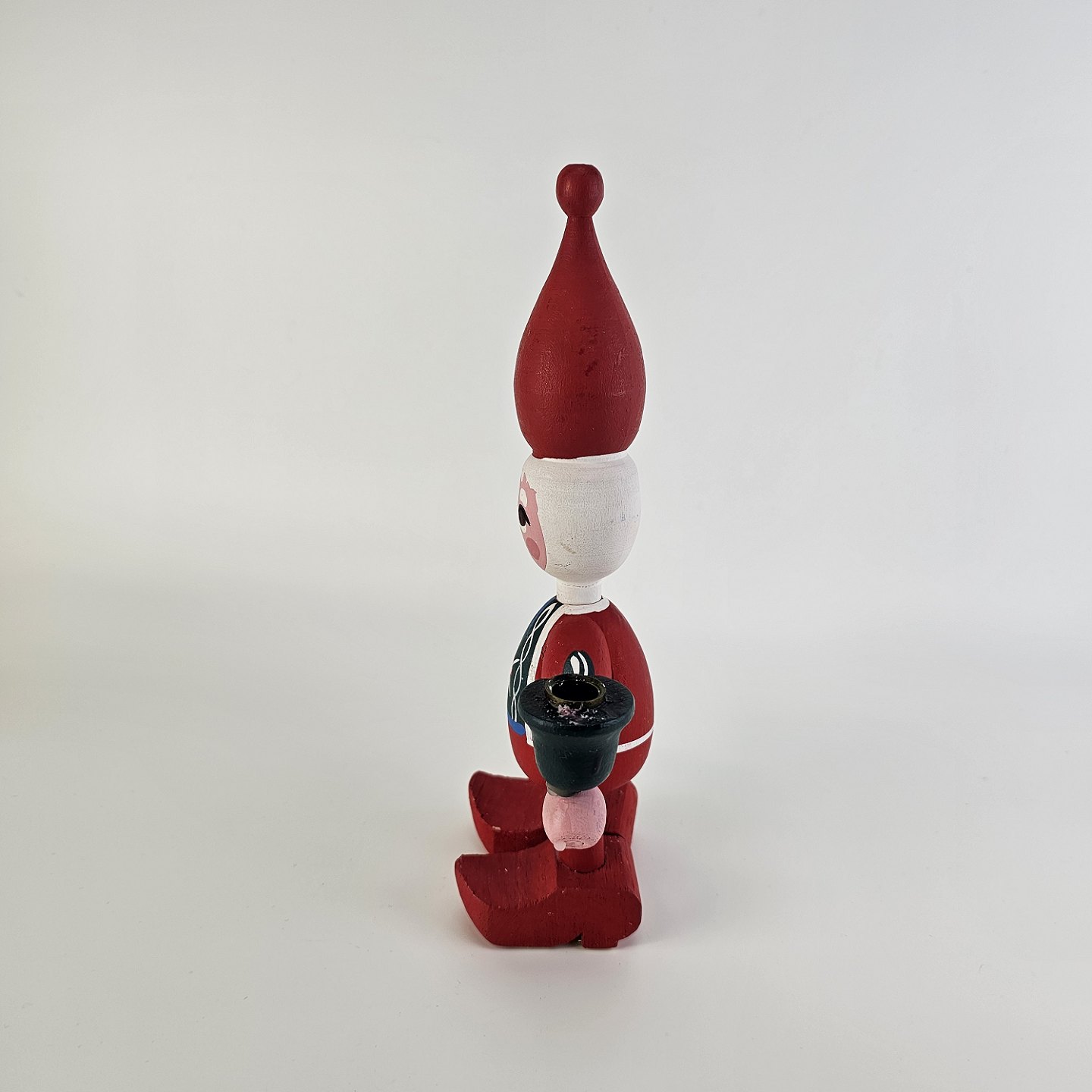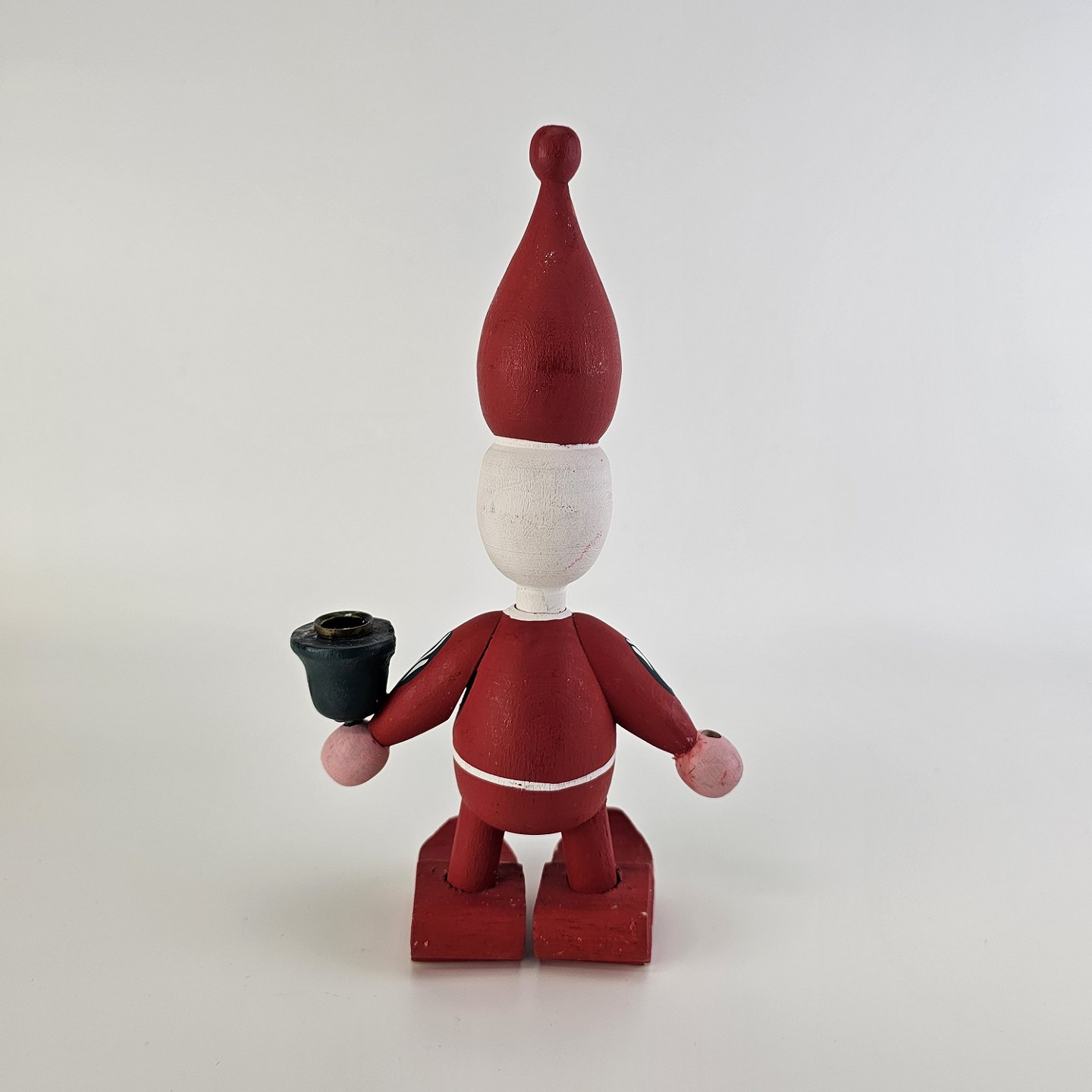 En håndmalet figur i træ med motiv af en nisse med en kerteholderNr. 0001033