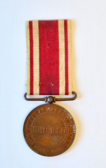 Medalje i kobber for deltagelse i krigen 1848 - 1850. Danmark. Med ordensbånd. Dia.: 3 cm. Pæn stand.Emne nummer: 28310