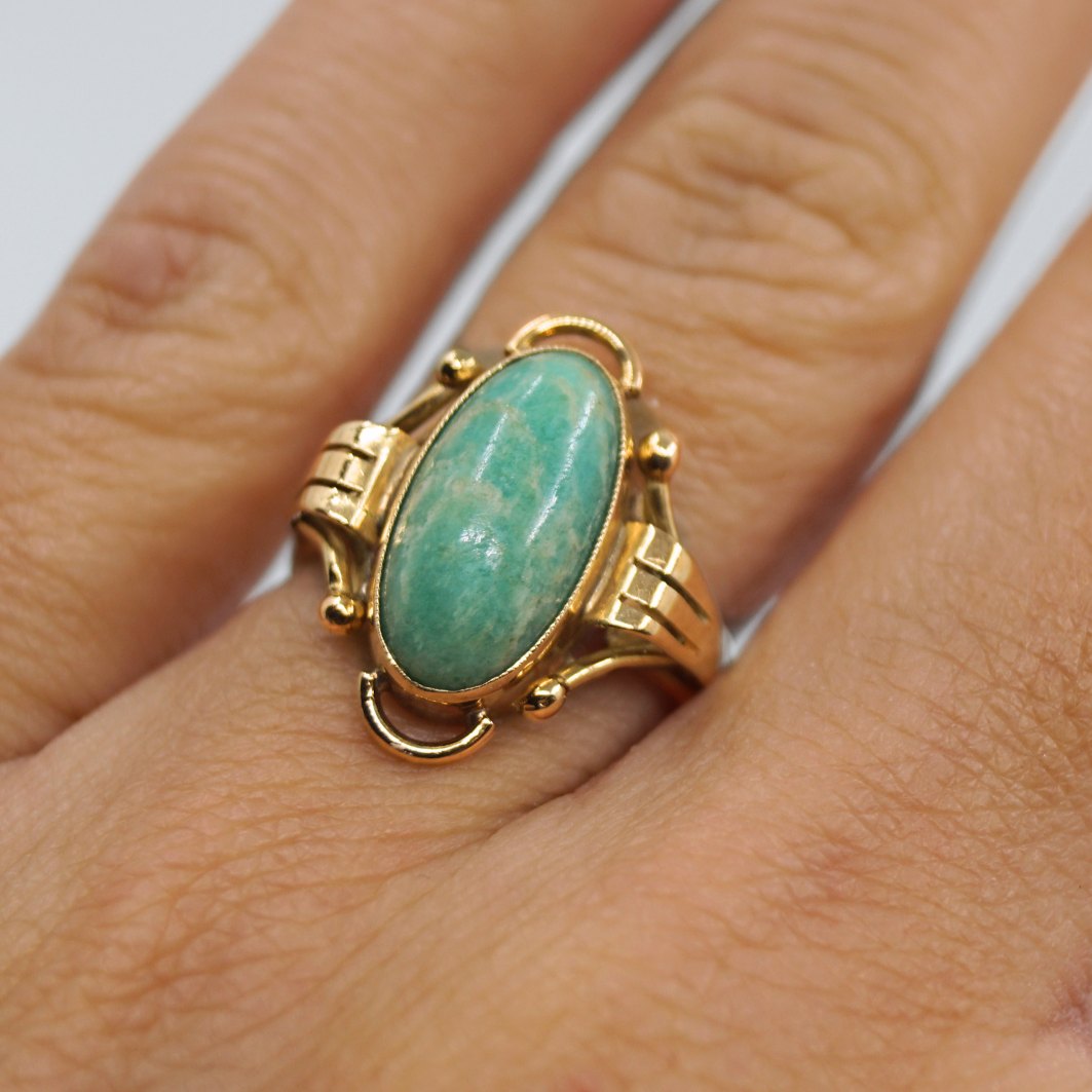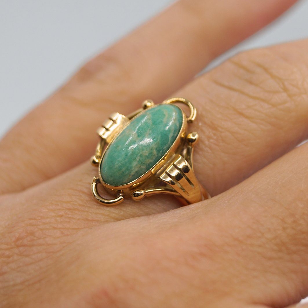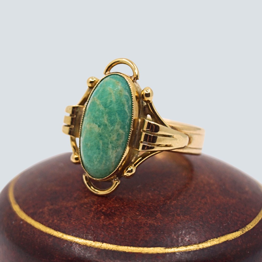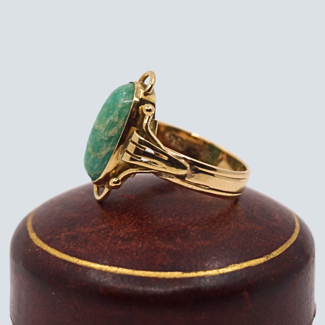 Bræmer Jensen guldsmykke.Ring i 14 kt. guld prydet med amazonit.