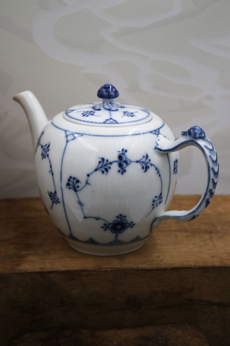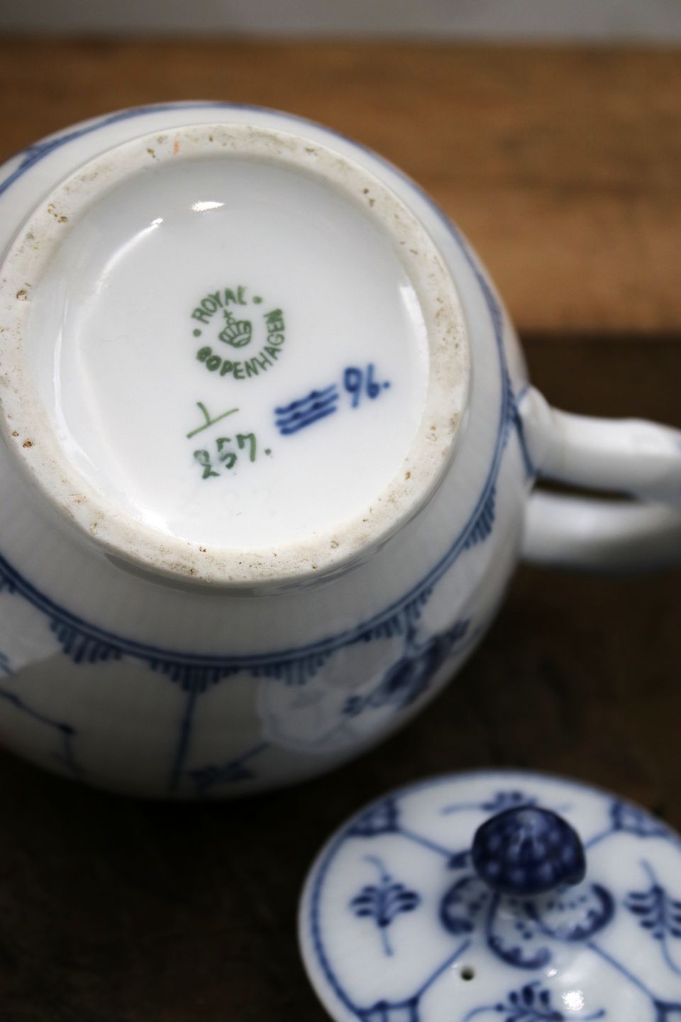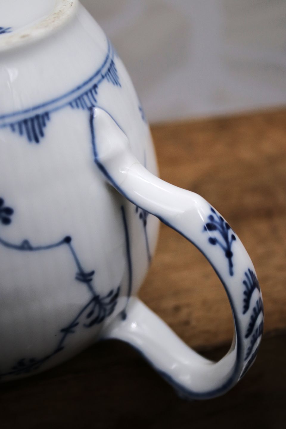 Sjælden Royal Copenhagen Musselmalet Riflet tekande.Dekorationsnummer: 1/257. H: 13cm. 1. sortering fra 1898-1923.