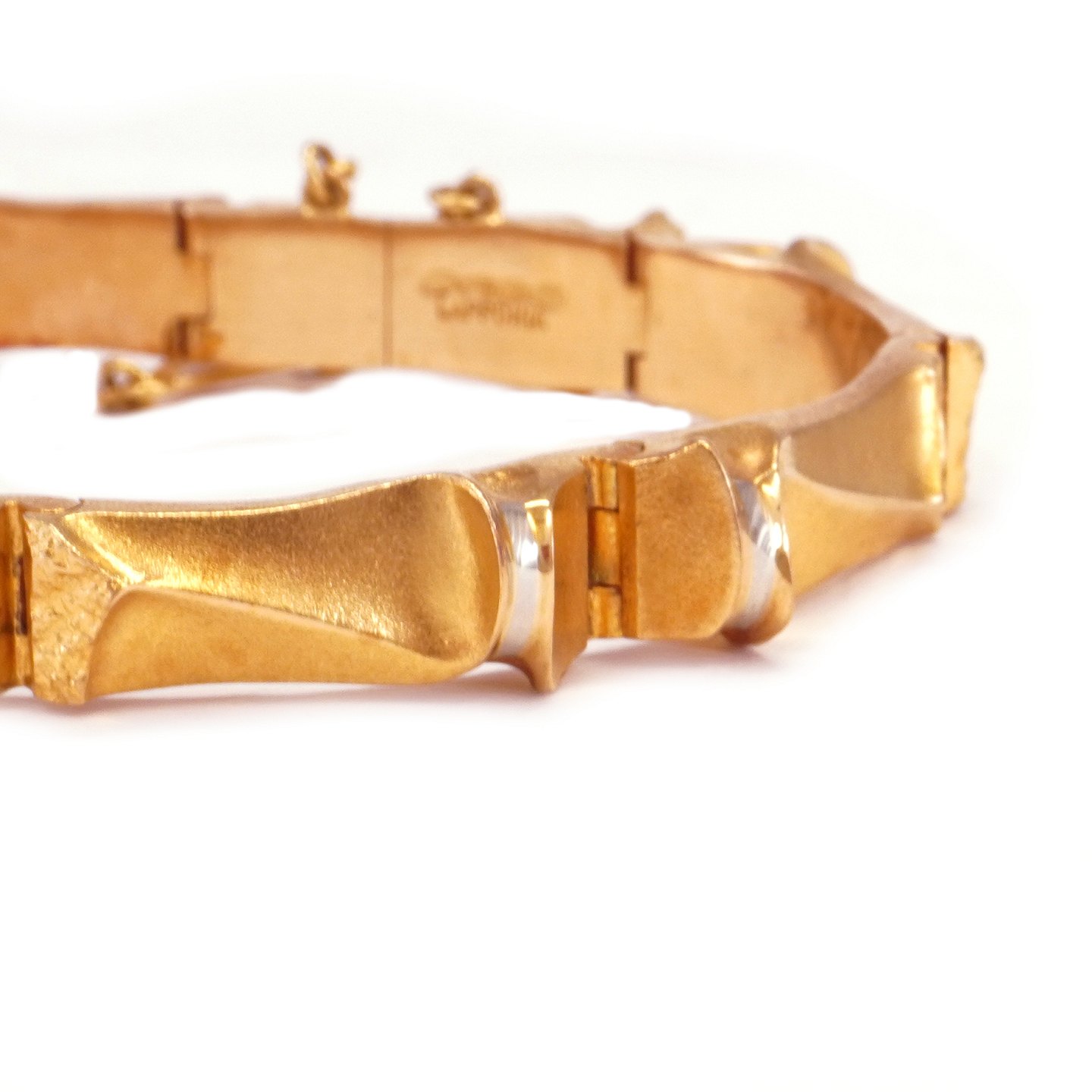 Lapponia 18kt guld leddelt armlænke med kasse- og sikkerhedslås og -kæde år 1980L: 18,5cm. Ledstr. 25x8mm