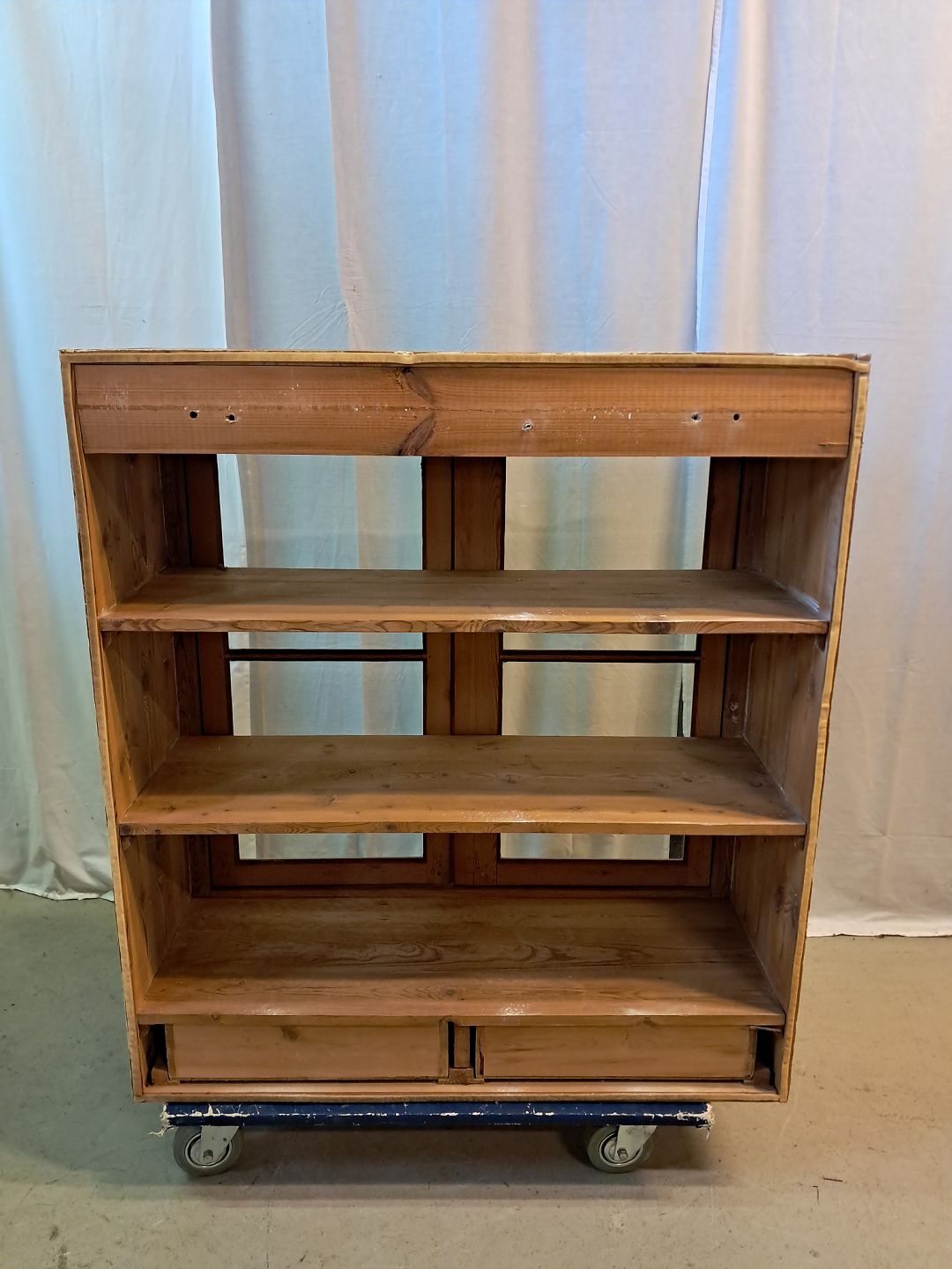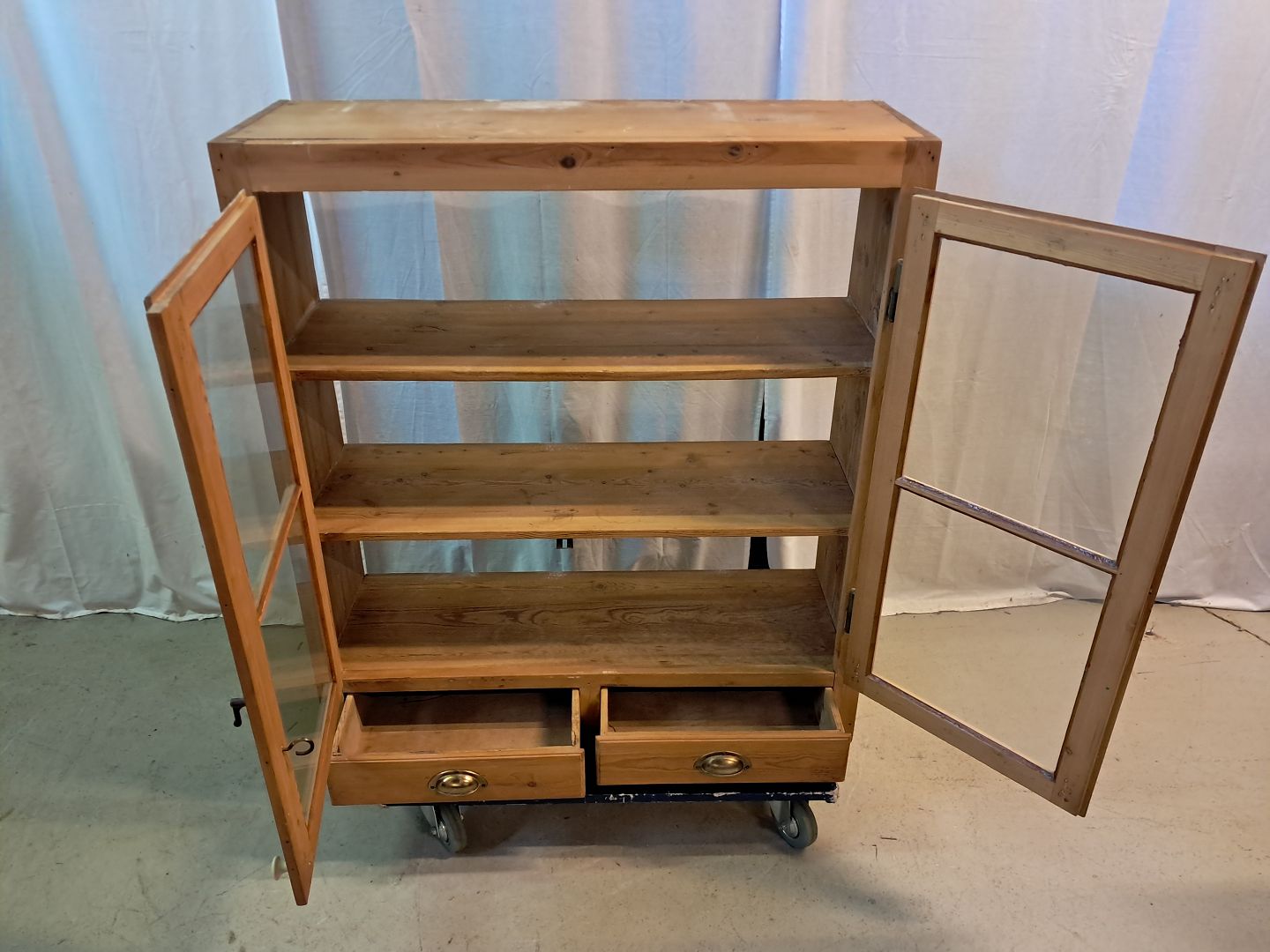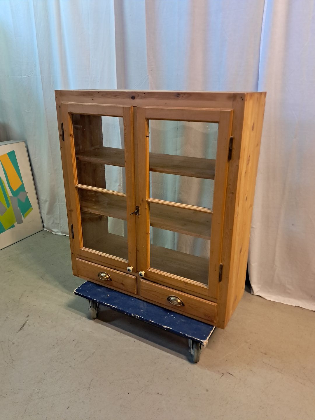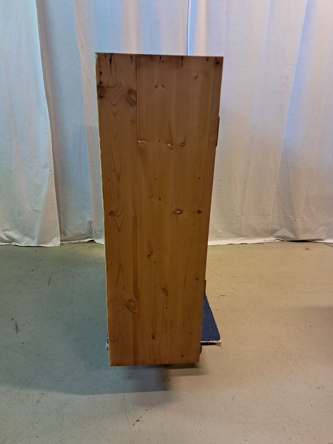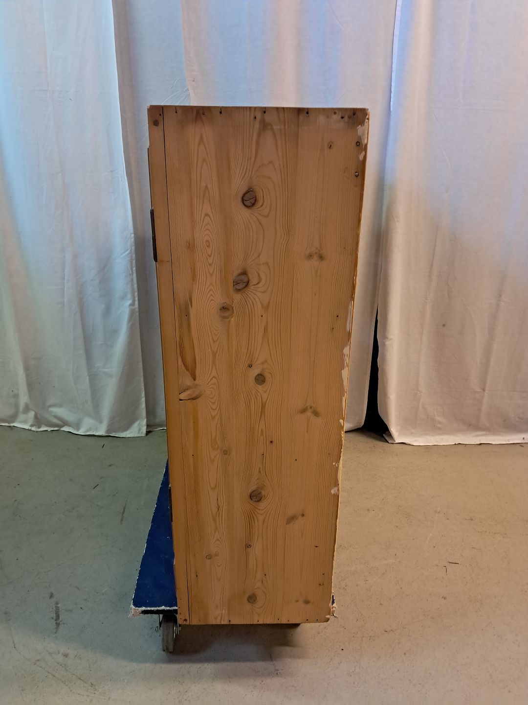 Gammelt køkkenskab i massivt fyrretræ, fra 1920erne.Det har brugsspor.
