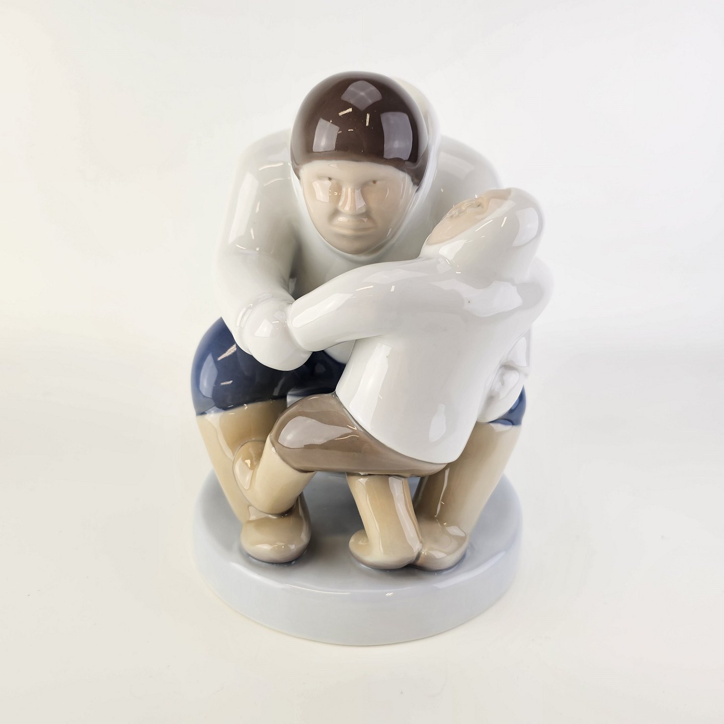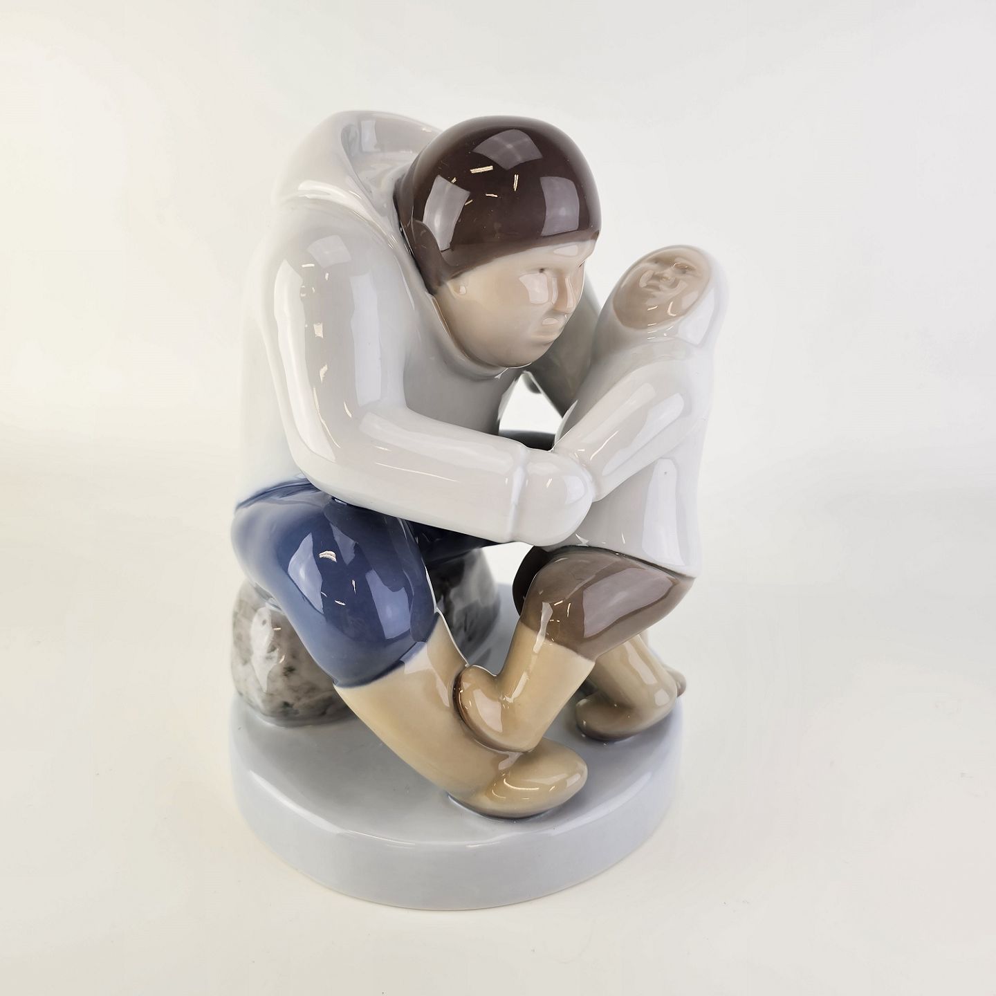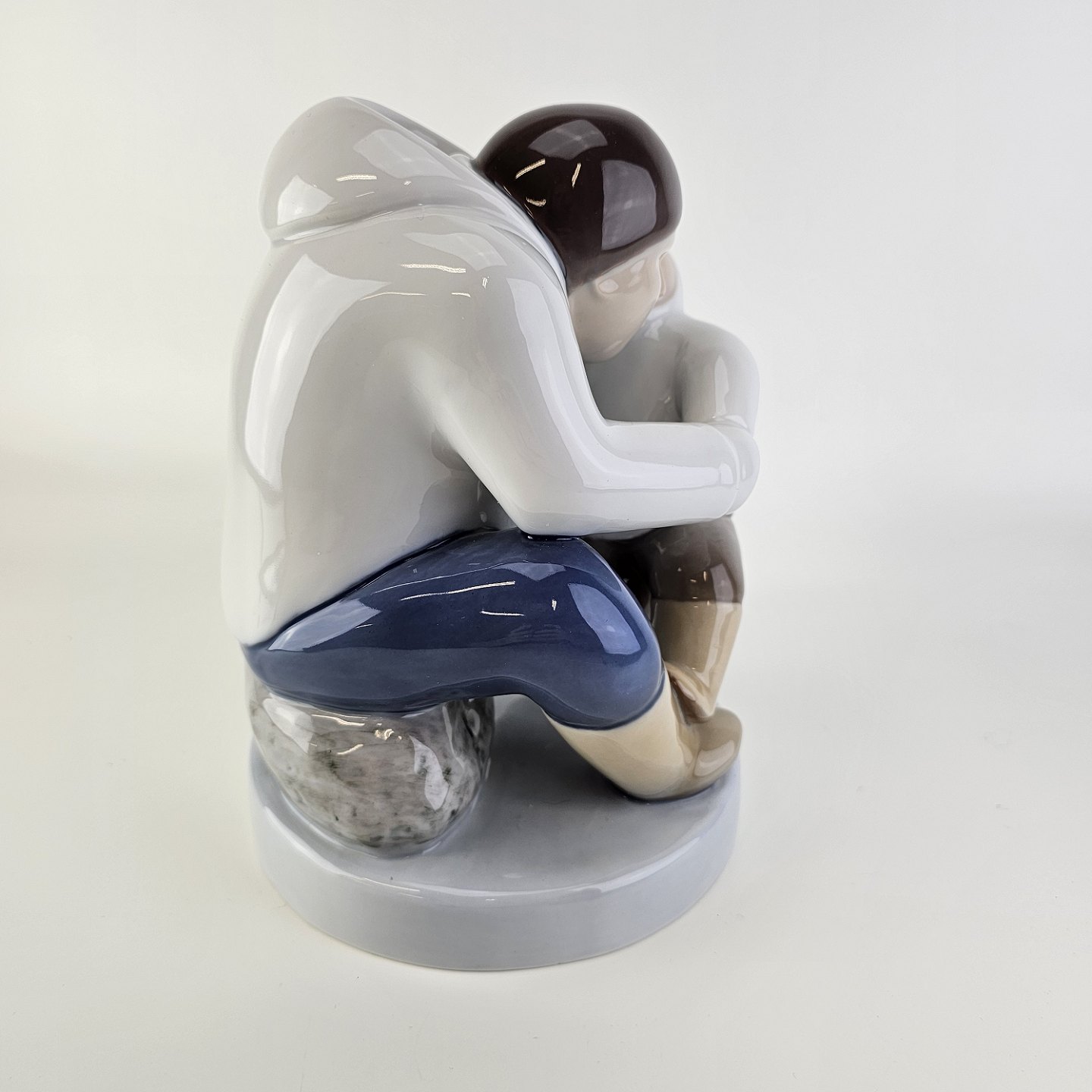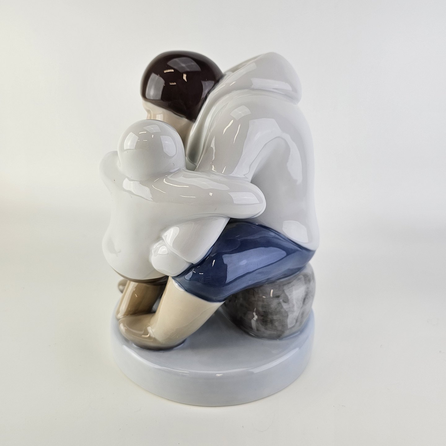 Figur i porcelæn med motiv af en grønlænder med et barnNr. 2412