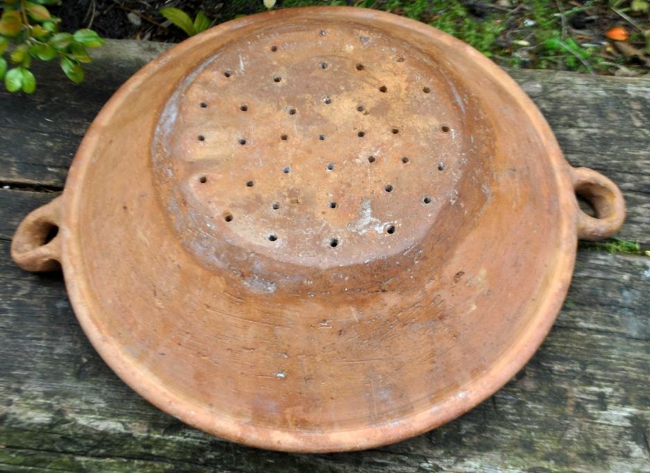 Dansk lertøjs dørslag, 19. årh. H: 8 cm. Dia.: 29 cm.Emne nummer: 28335