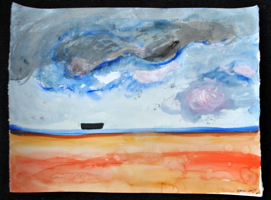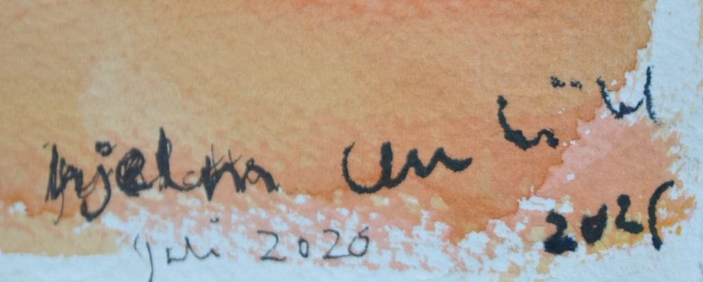 Kühl, Lena (1950 -) Danmark: Hjelm, 2021. Akvarel på papir. Signeret: Hjelm juli 2020. Lena Kühl 2021. H: 56 cm. B: 76 cm.Uindrammet.