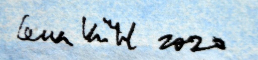 Kühl, Lena (1950 -) Danmark: Landskab, 2020. Akvarel på papir. Signeret: Lena Kühl 2020. H: 12 cm. B: 20 cm.Uindrammet.