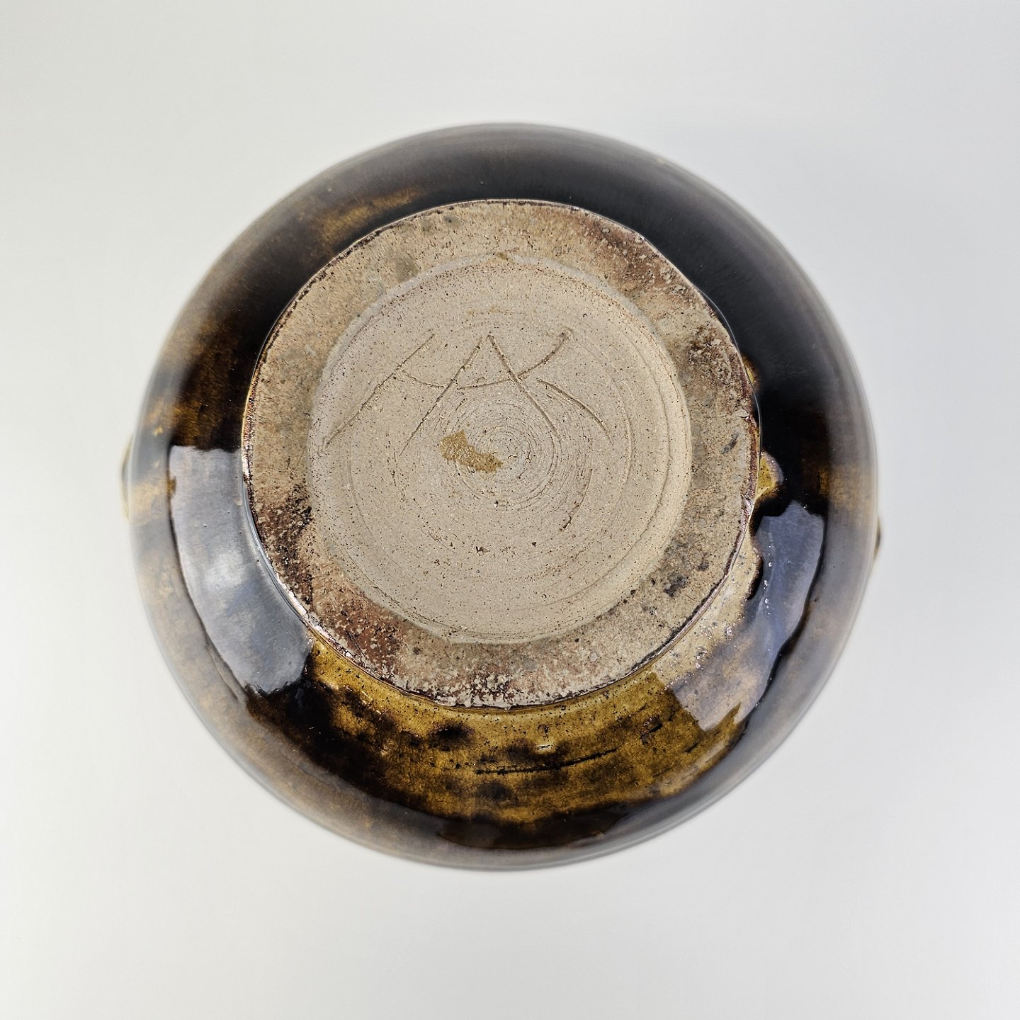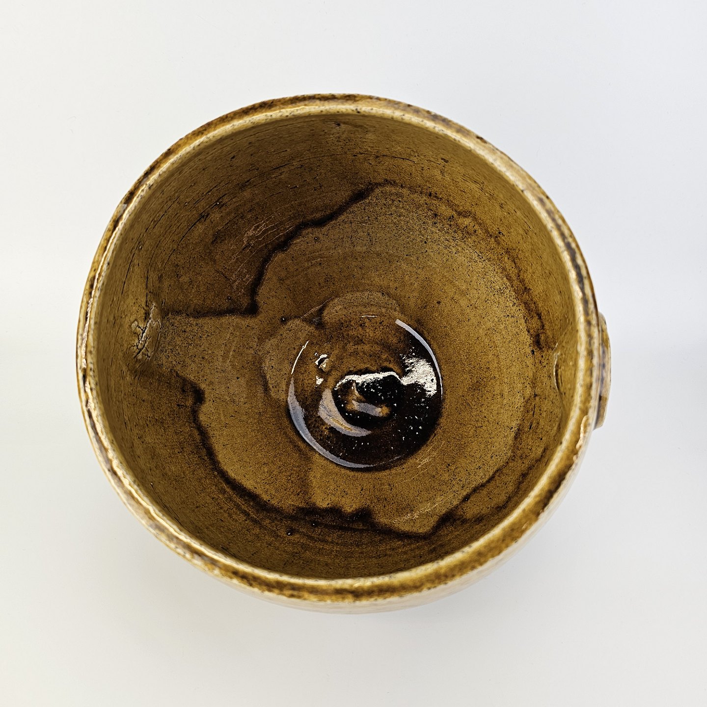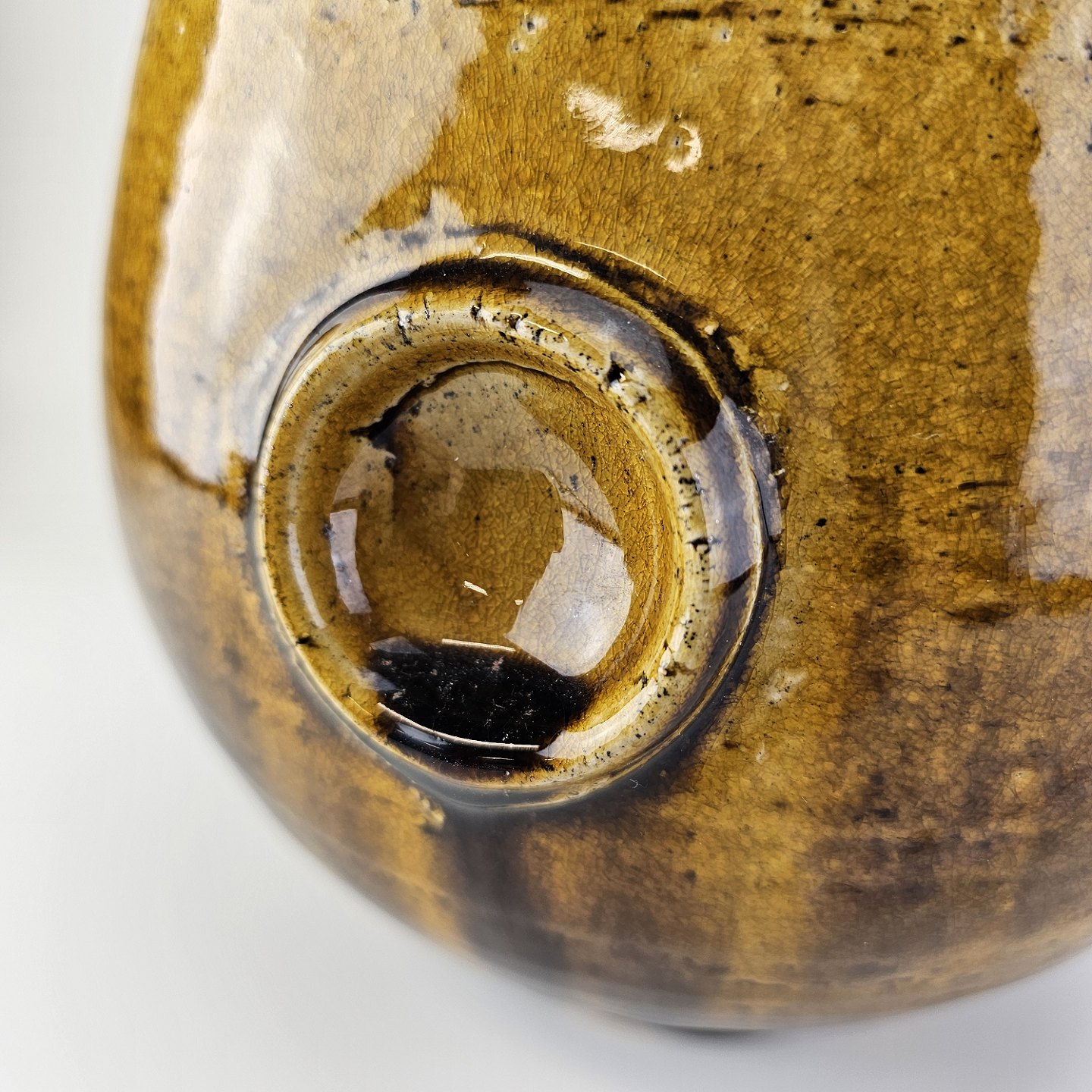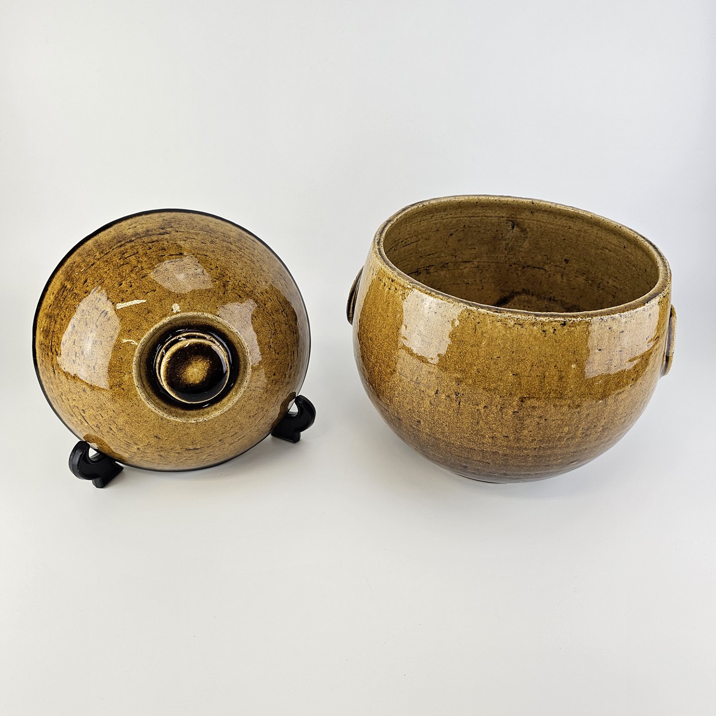 Æggeformet krukke med låg i brun glaseret keramikProducent Herman Kähler
