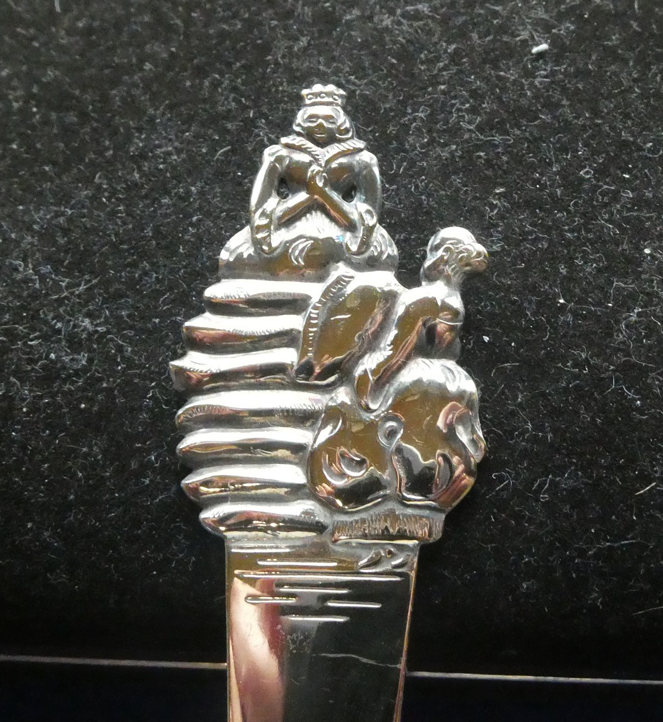 H.C. Andersen barnebestik i tretårnet forgyldt sølv med HPrinsessen på Ærten.H.C. Andersen eventyr børnebestik.