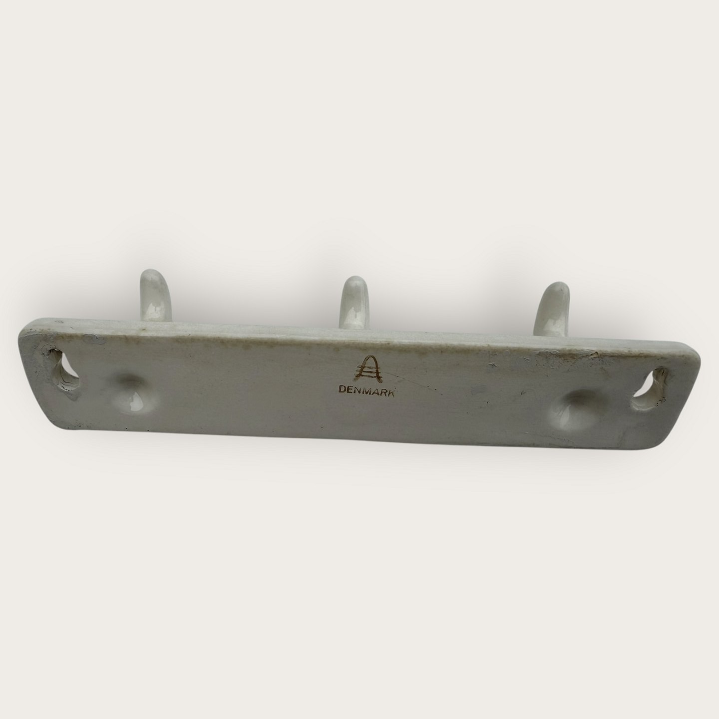 Aluminia, coat rack, 18x16cm, 3 hooks * With some patina at screw holes and small cracks under the glaze (see photo)Stock: 1