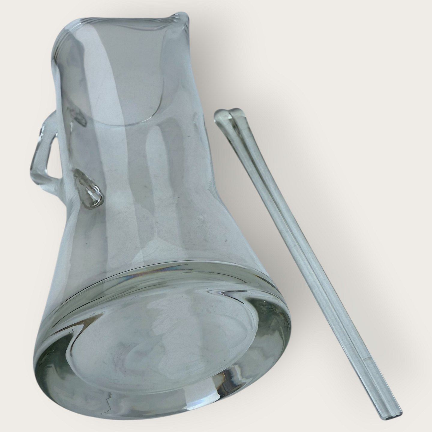 Glaskande med rørepind, Cocktail kande, Højde 28cm, bredde ved hank 16cm * pæn stand*Lager: 1