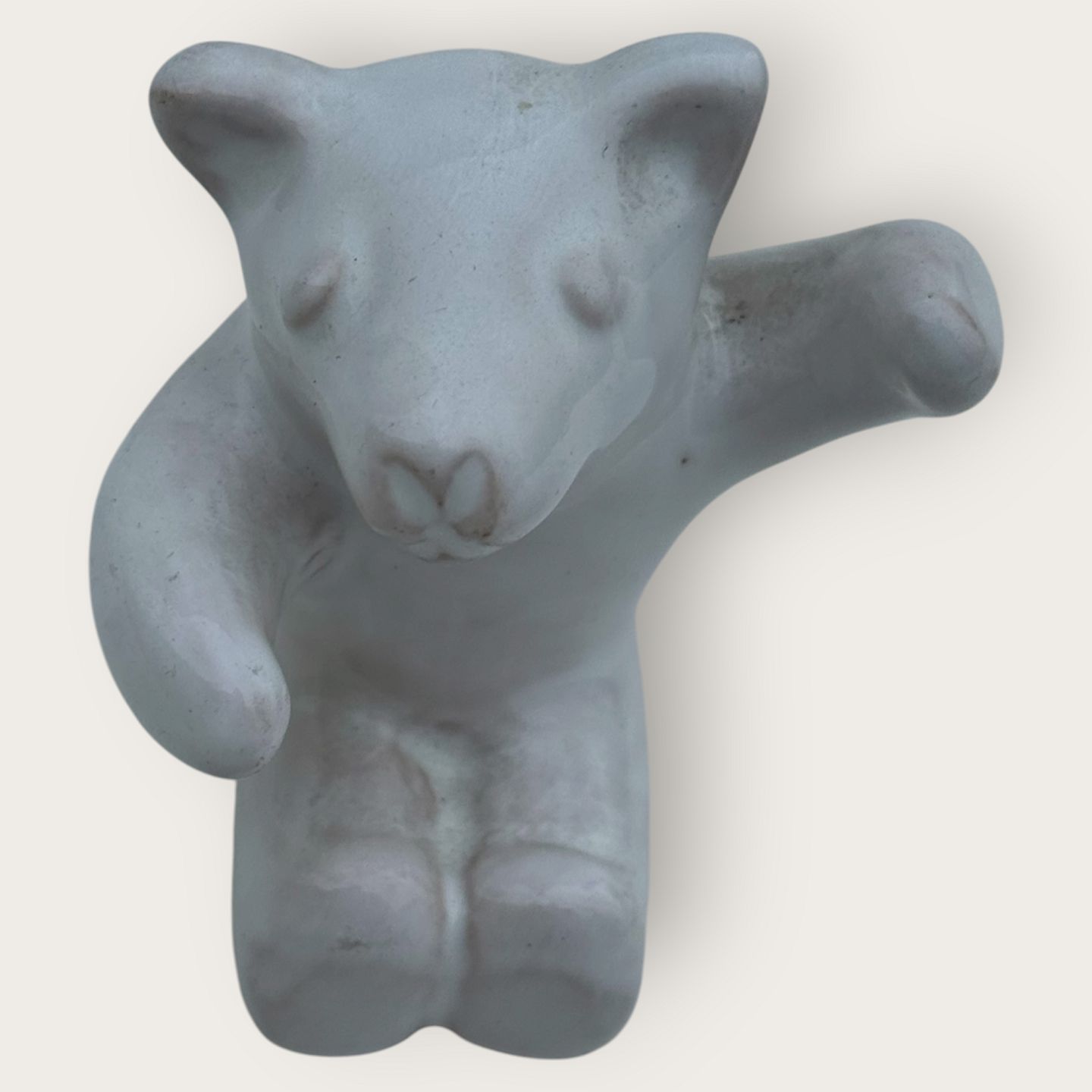 Bornholmsk keramik, Hjorth, Bjørne orkester, Tilskuer, bjørn med hvid glasur, ca. 5,5x5,5cm *Pæn stand*Lager: 1