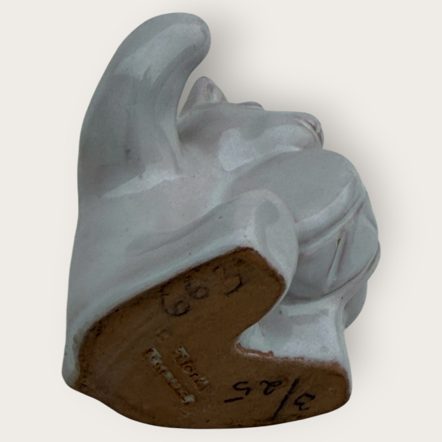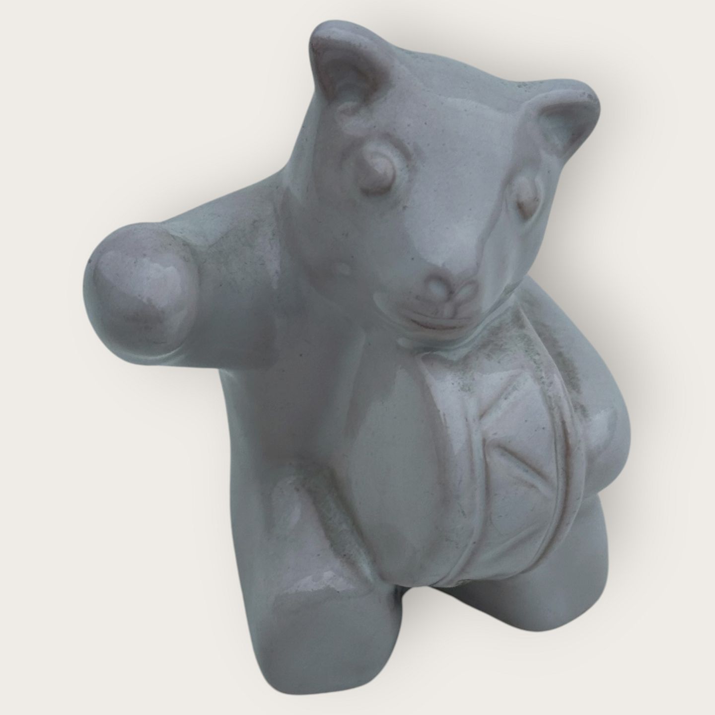 Bornholmsk keramik, Hjorth, Bjørne orkester, Tromme, bjørn med hvid glasur, ca. 6,5x5,5cm *Pæn stand*