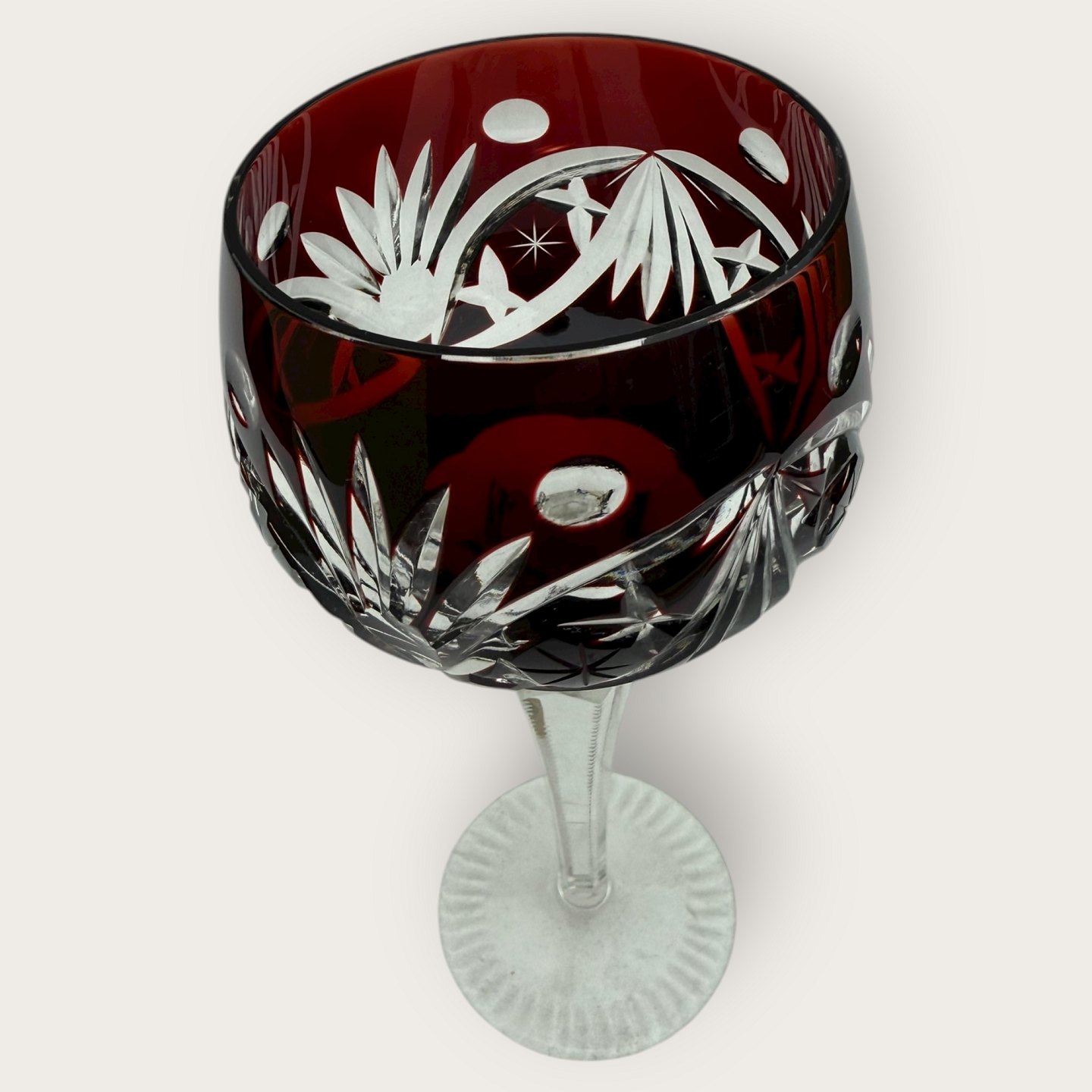 Bøhmisk krystal glas, Vin glas med slibninger, Bordeaux, 19,5cm høj, 8,5cm i diameter *Perfekt stand*Lager: 1