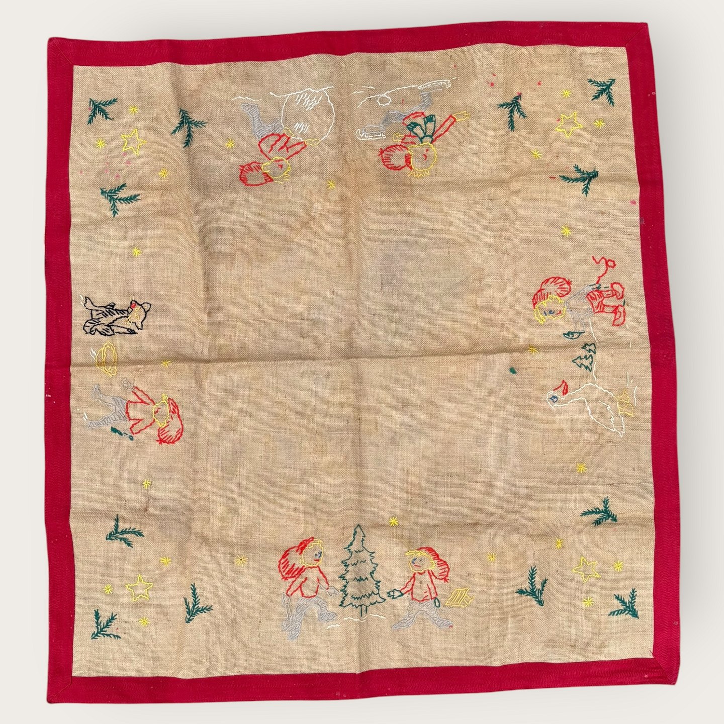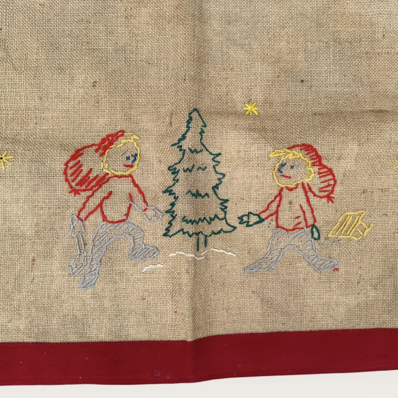 Juletræstæppe, Broderi med julemotiv, 100cm / 95cm *Pænt patineret stand*Lager: 1