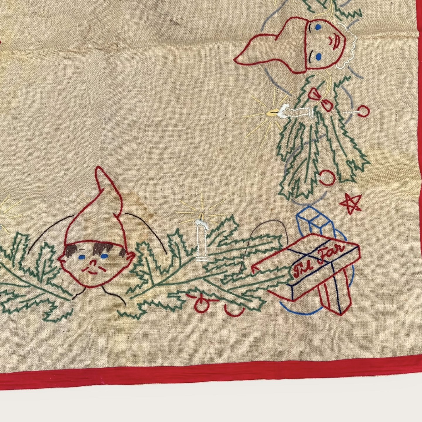 Juletræstæppe, Broderi med julemotiv, 120cm / 120cm *Pænt patineret stand*Lager: 1