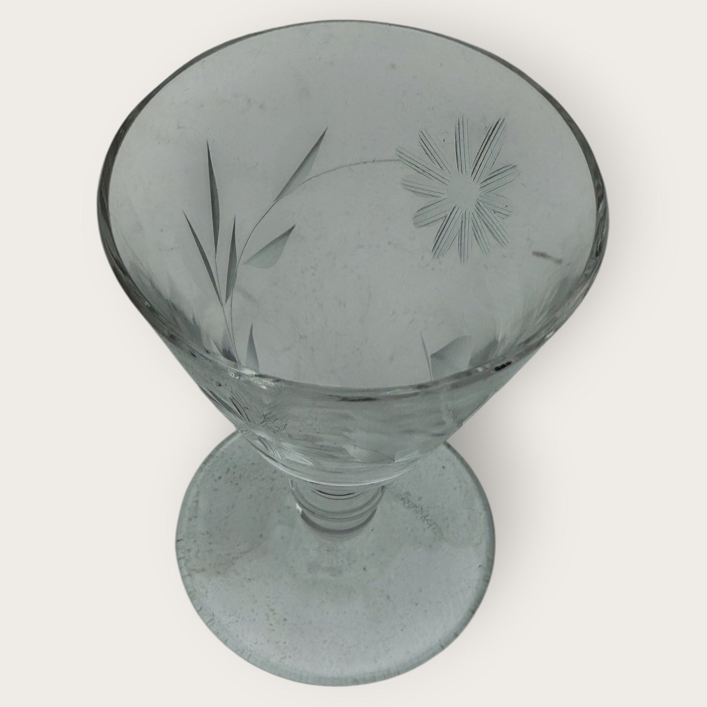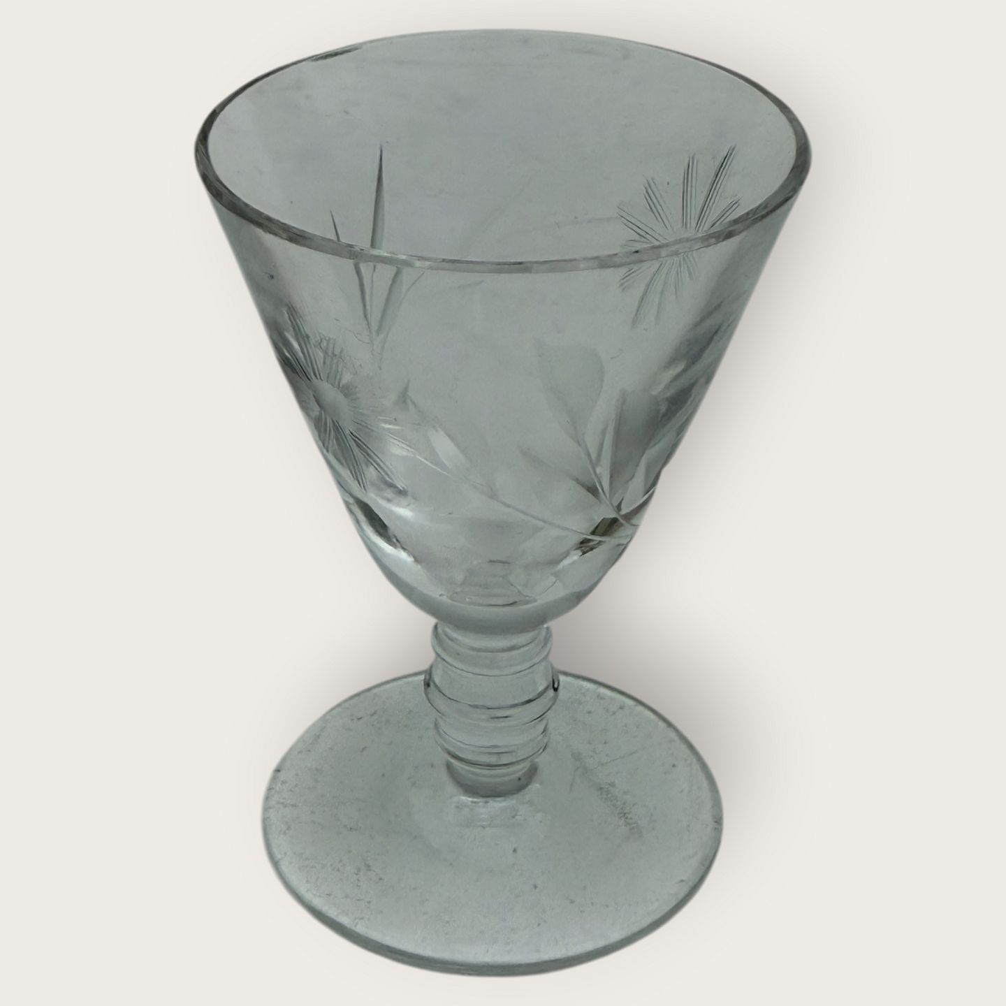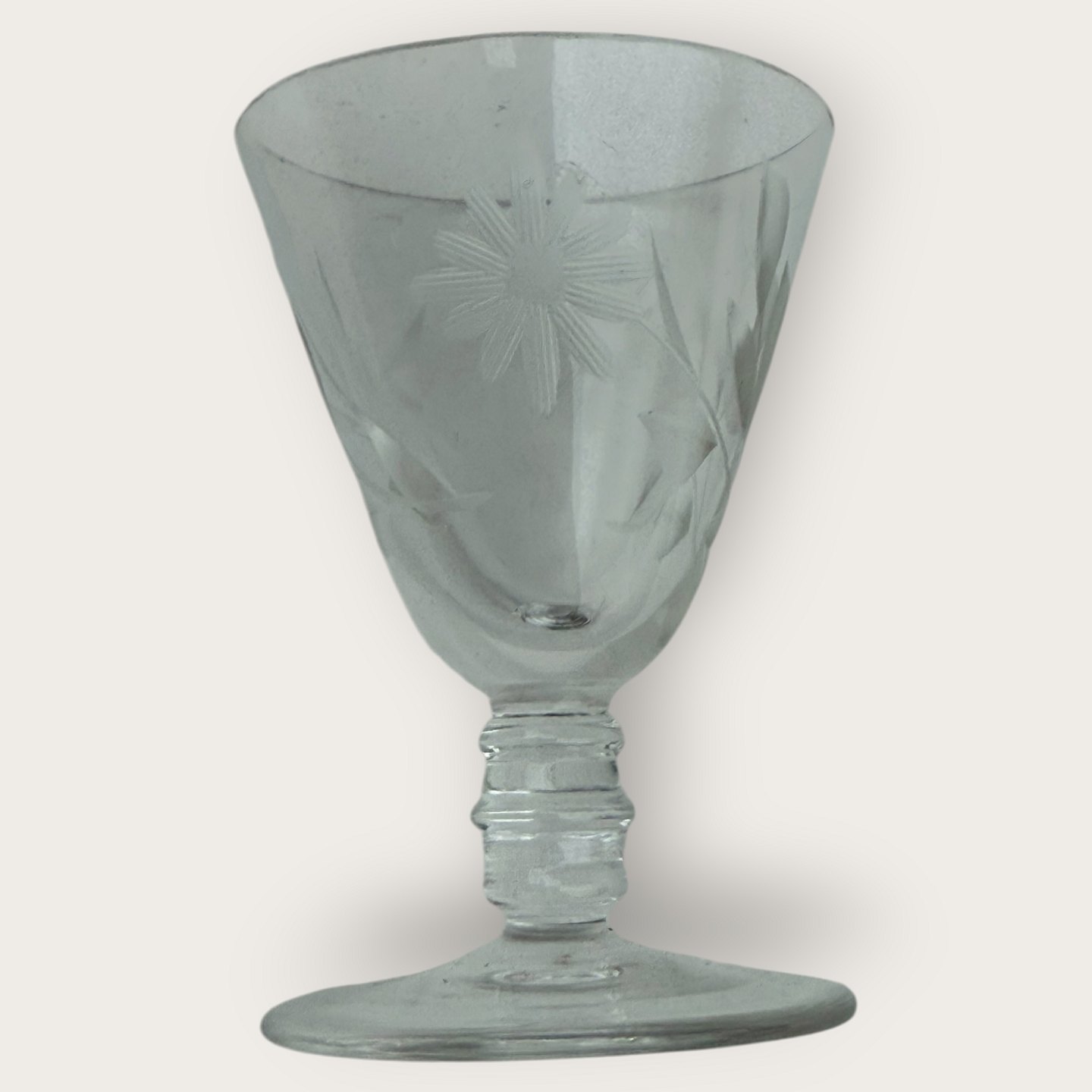 Snapseglas med blomsterslibninger, Højde 6,5cm, diameter 4,5cm *pæn stand*Lager: 5