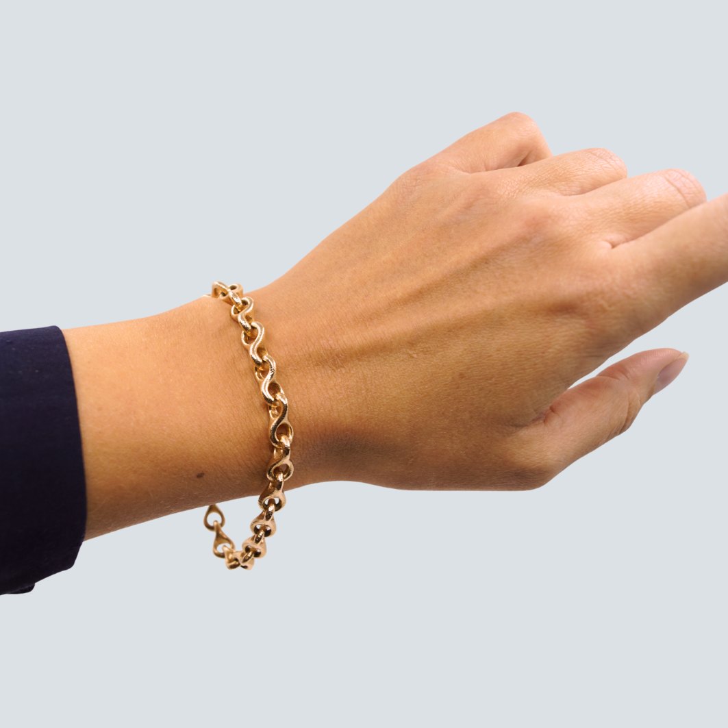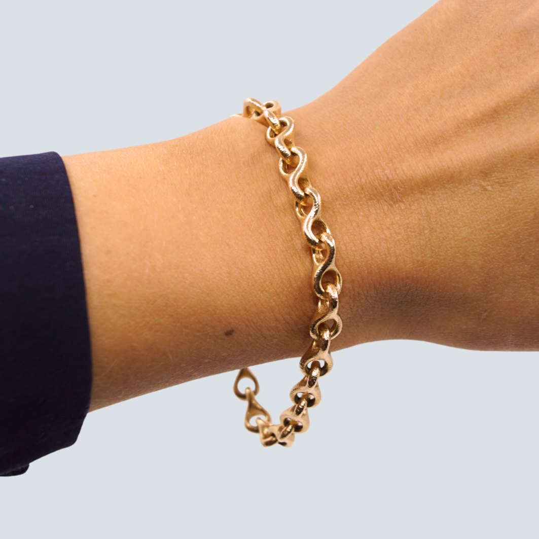Ole Lynggaard guld smykke.Ole Lynggaard 8-tals armbånd af 14 kt. guld. Inklusiv kuglelås i 18 kt. hvidguld. Kuglelåsen er prydet med rødguld og diamanter.