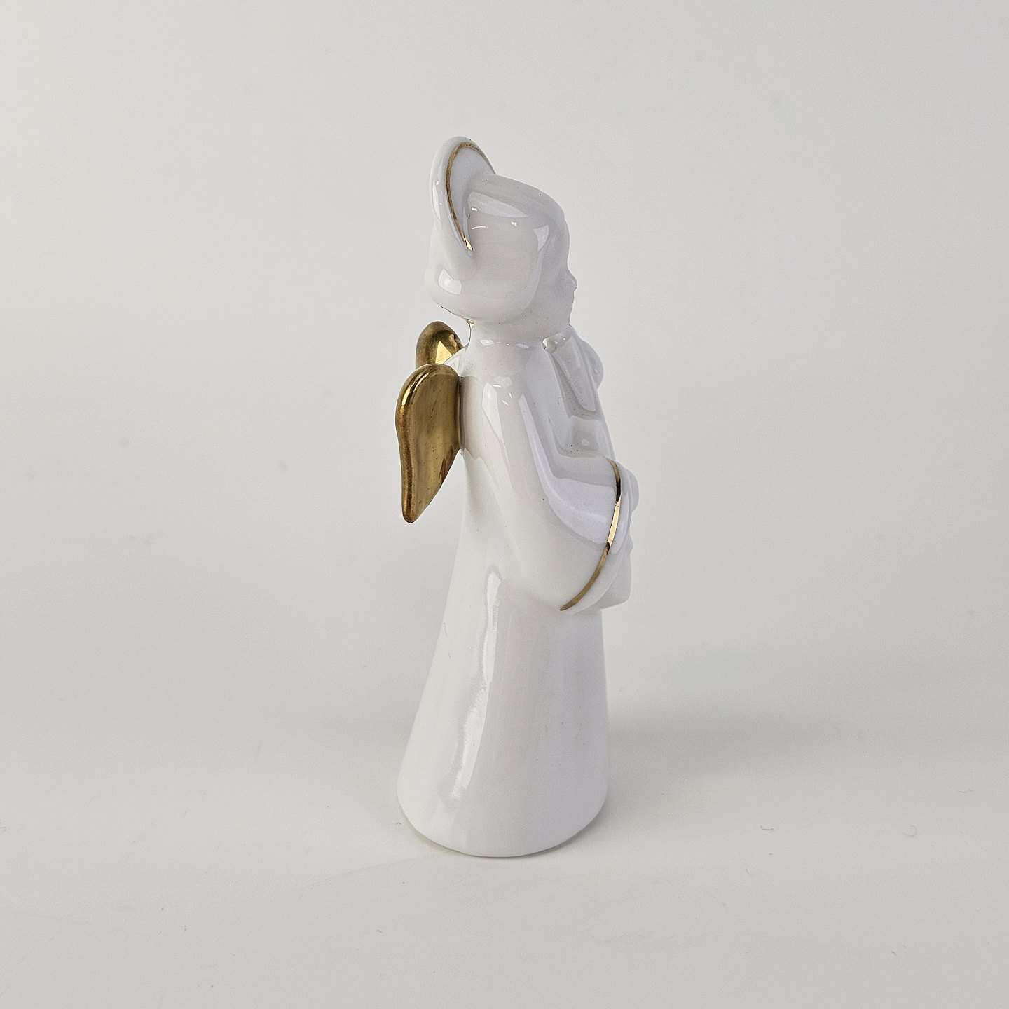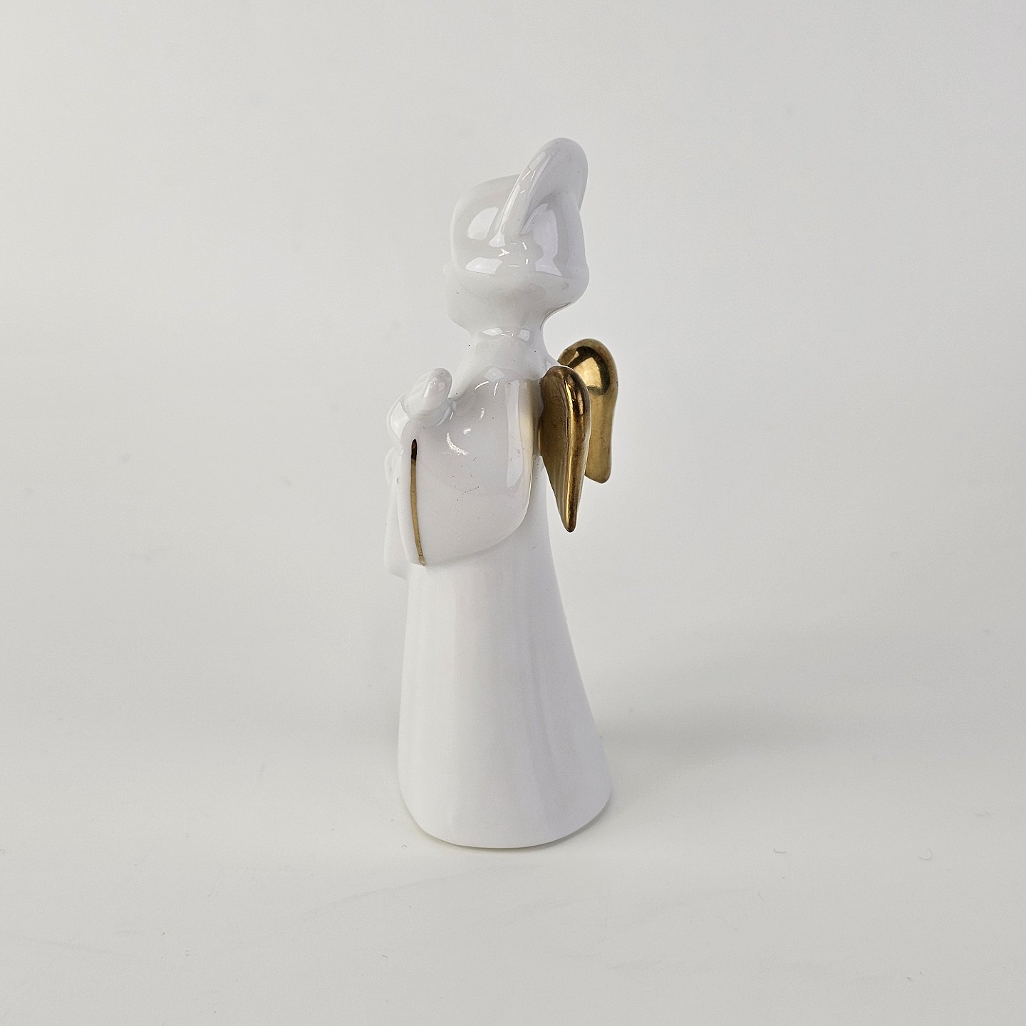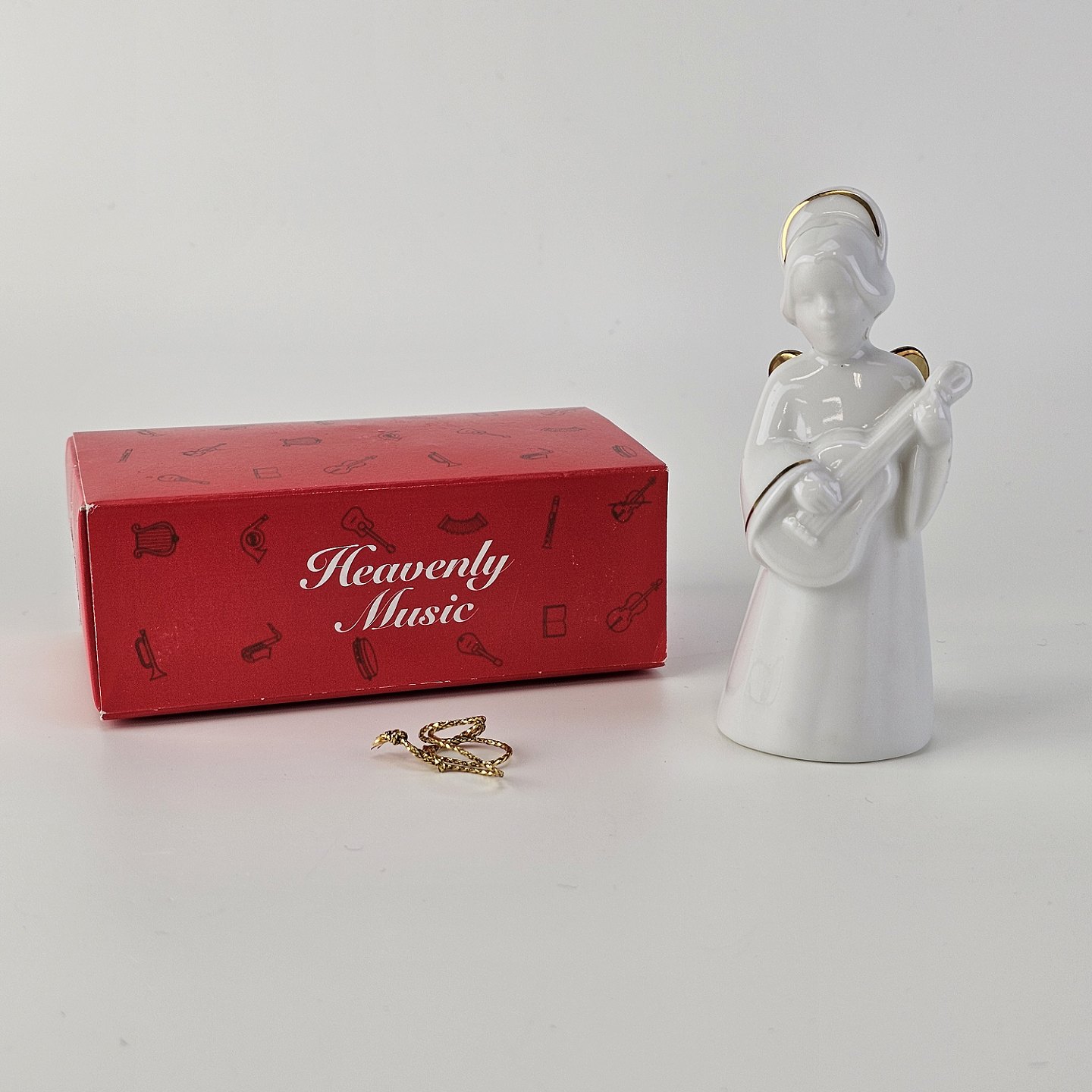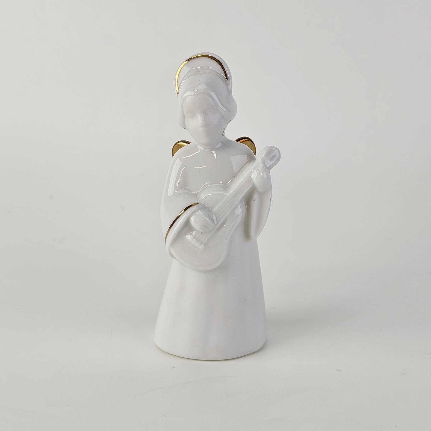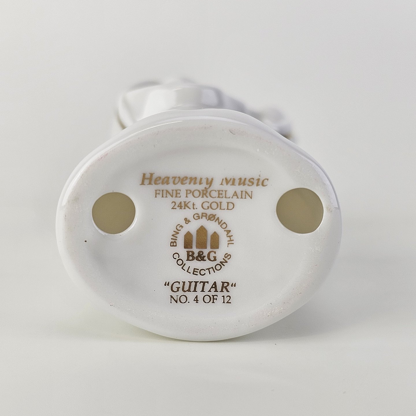 Figur med motiv af en engel som spiller på guitar. Figuren er i hvidt porcelæn med forgyldte vinger og detaljer i 24 karat guld.4 af 12 i serien Heavenly Music med titlen Guitar