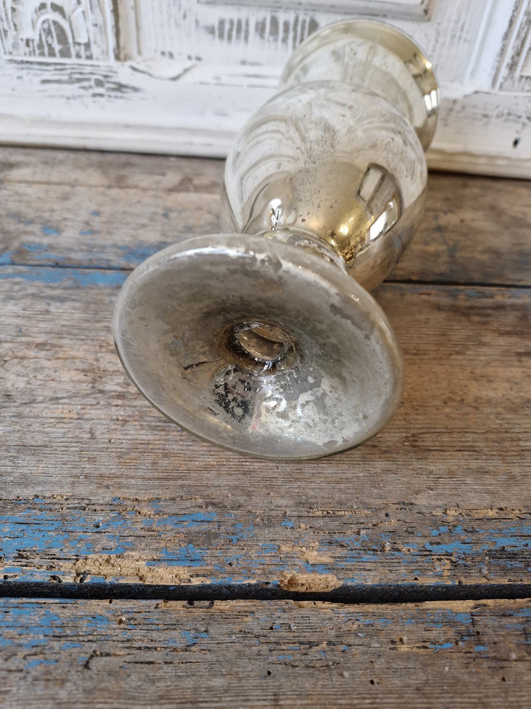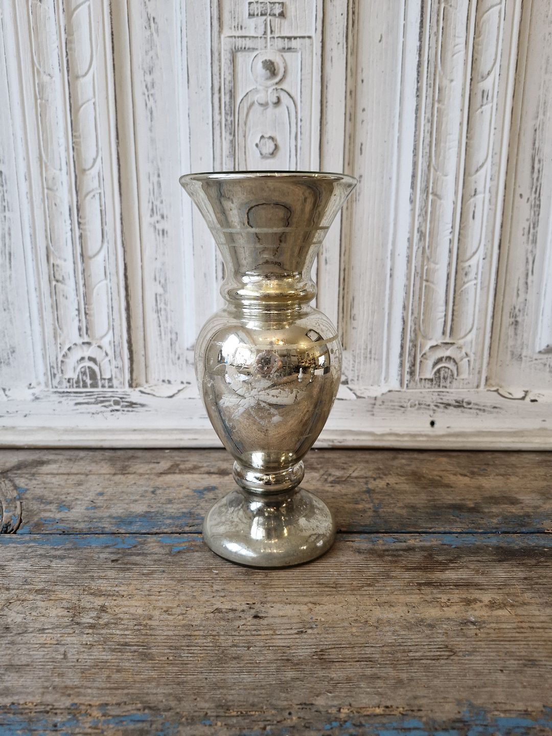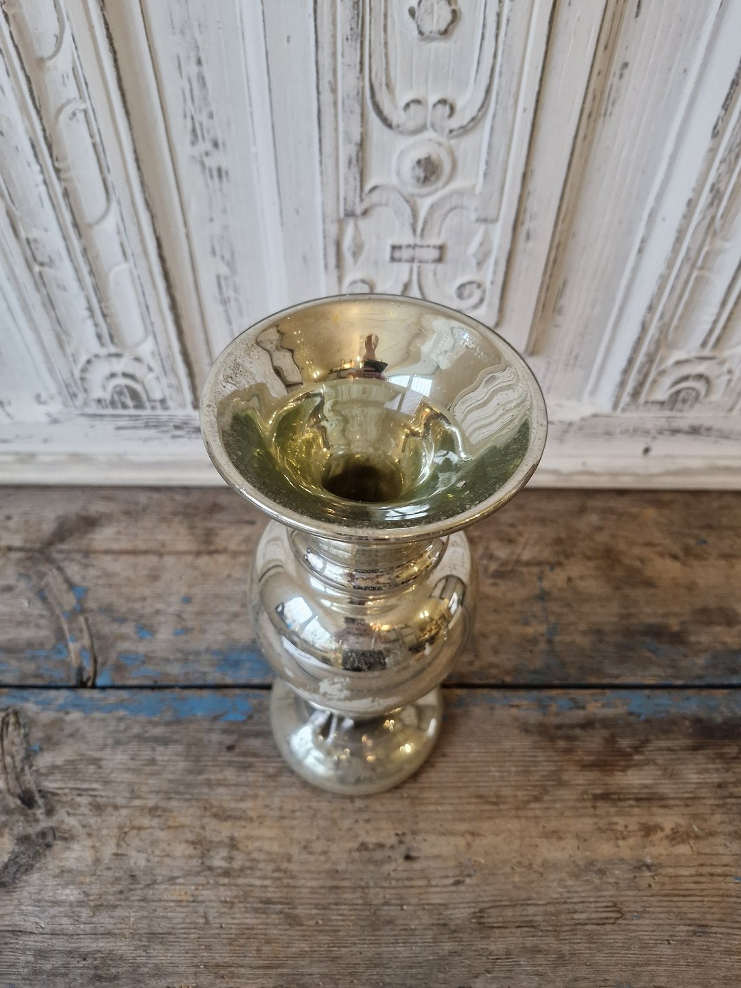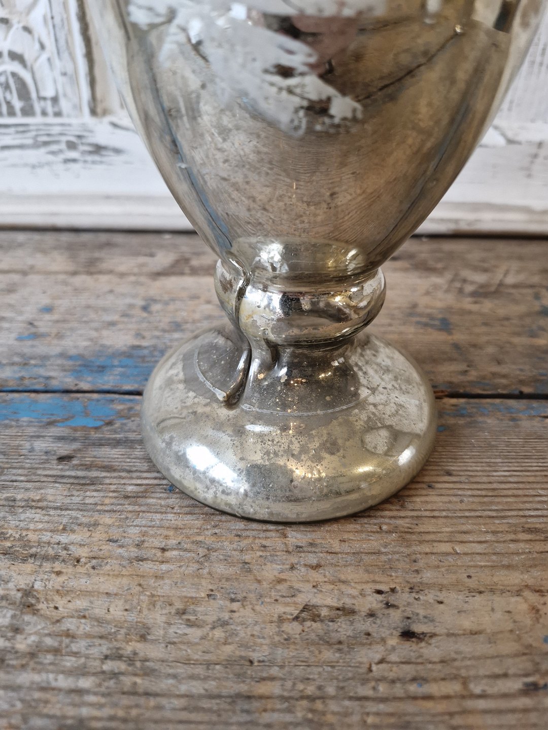 1800 tals vase i fattigmands sølv dekoreret med bladeFremstår med en "fold" på foden, den er opstået ved produktionen.