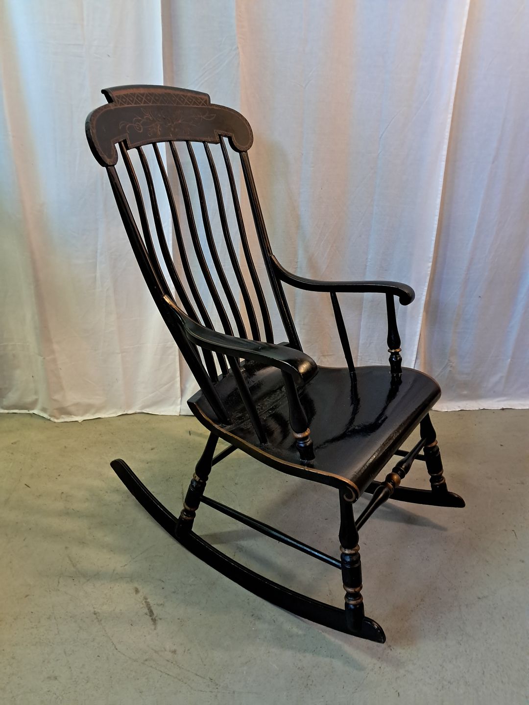 Malet gyngestol fra 1910erne.Den har brugsspor.