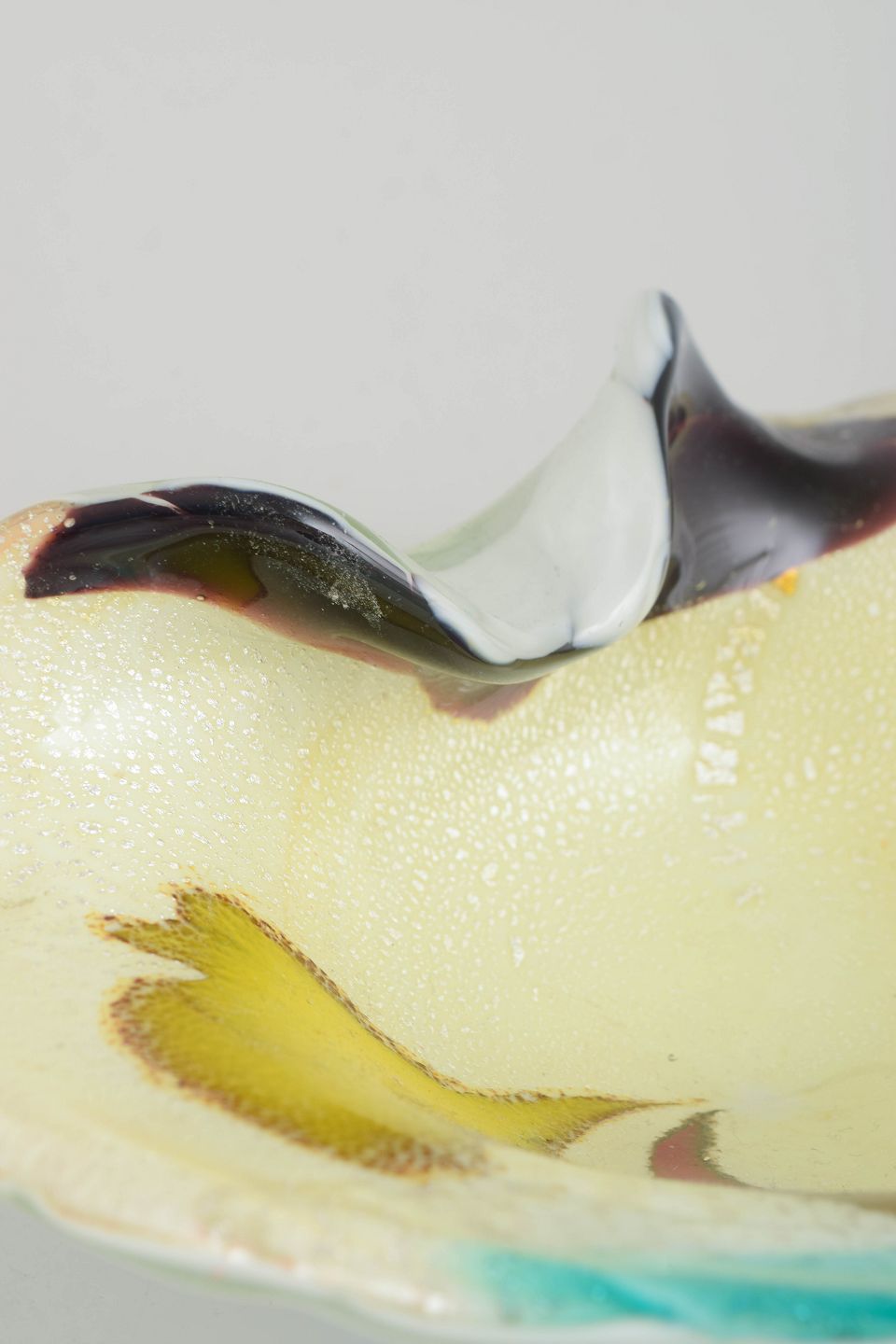 Murano-glas fra 1960’erne og 70’erne udviser stor variation i farve og form, som resultat af et kreativt samspil mellem traditionelt håndværk og moderne design. Mange værksteder eksperimenterede med nye teknikker, som lagglas, irisering og frit formede skulpturelle udtryk – alt sammen kendetegnende for Murano’s legendariske glasarv.