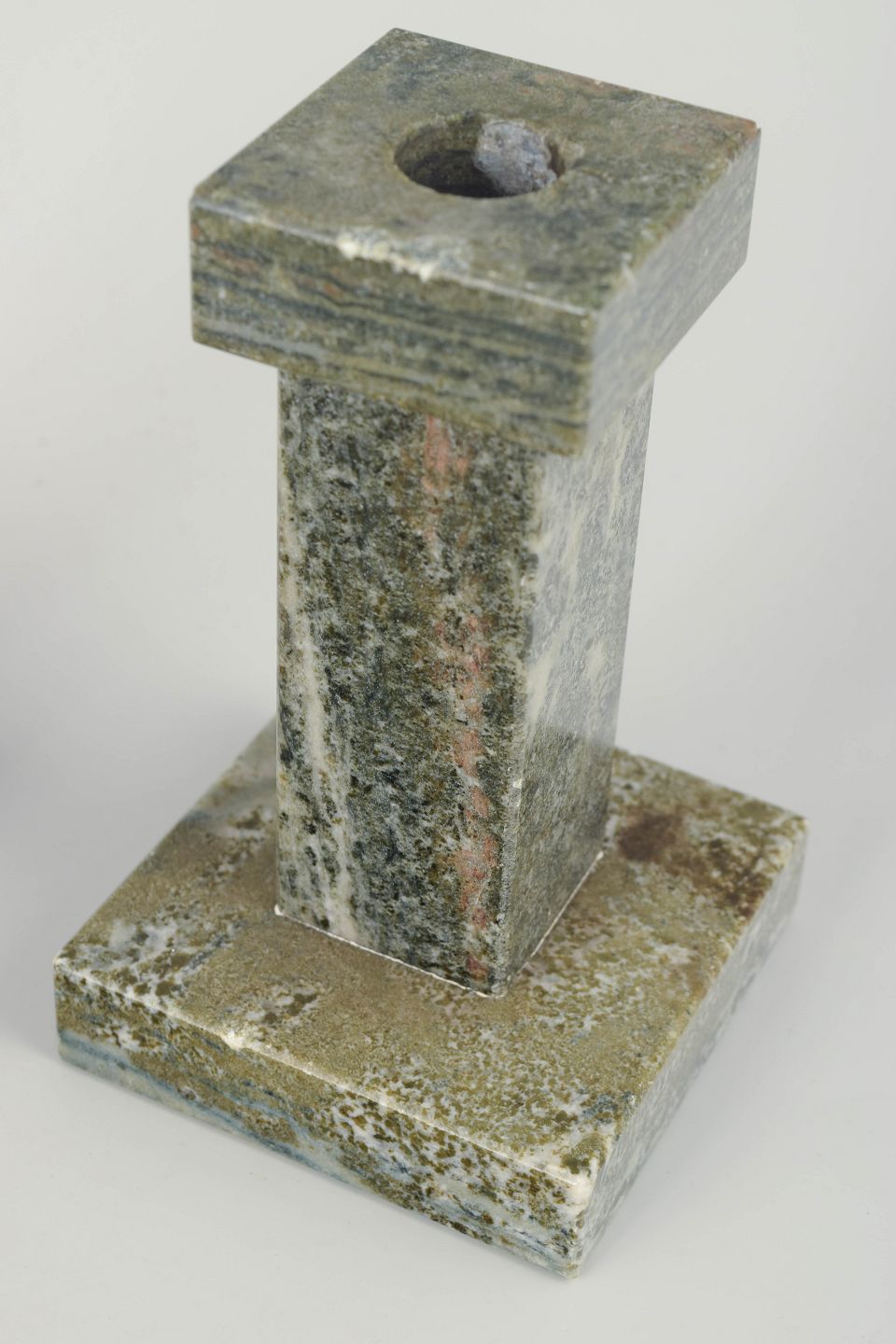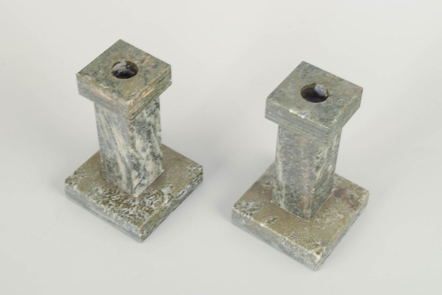 Svenske marmorstager, midten af 1900-tallet.Par marmorstager i grå- og grønmeleret sten med geometrisk, minimalistisk formgivning. Håndforarbejdede med elegant proportioneret fod og top.