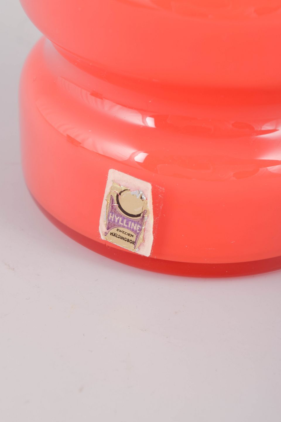 Hyllinge Glasværk, beliggende i Helsingborg, producerede i 1960’erne og 70’erne en række farverige, mundblæste glasobjekter, ofte med tydelig inspiration fra samtidens pop- og modernistiske formsprog. Værkets karakteristiske brug af kraftige farver og enkle, arkitektoniske silhuetter har gjort Hyllinge til et populært navn blandt samlere af skandinavisk glasdesign.