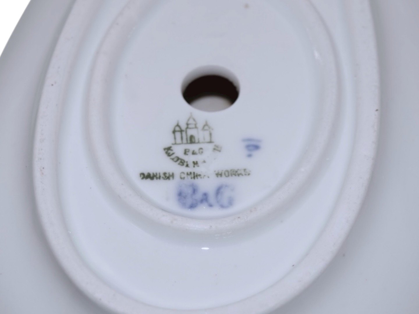 Bing & Grøndahl Blåmalet (Musselmalet), sjælden sovseskål.Af fabriksmærket ses det, at denne er produceret mellem 1899 og 1902.