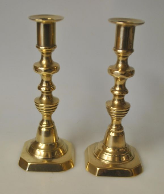 Par engelske messingstager, 19. årh. H.: 18,5 cm.Fremstår nypudset!