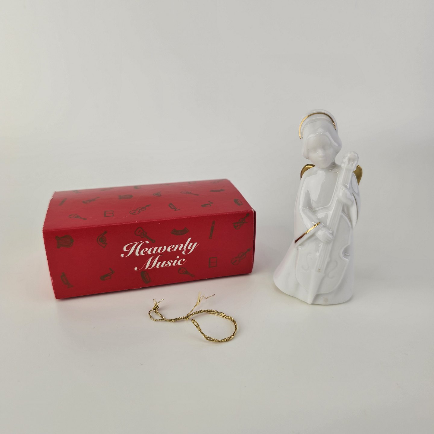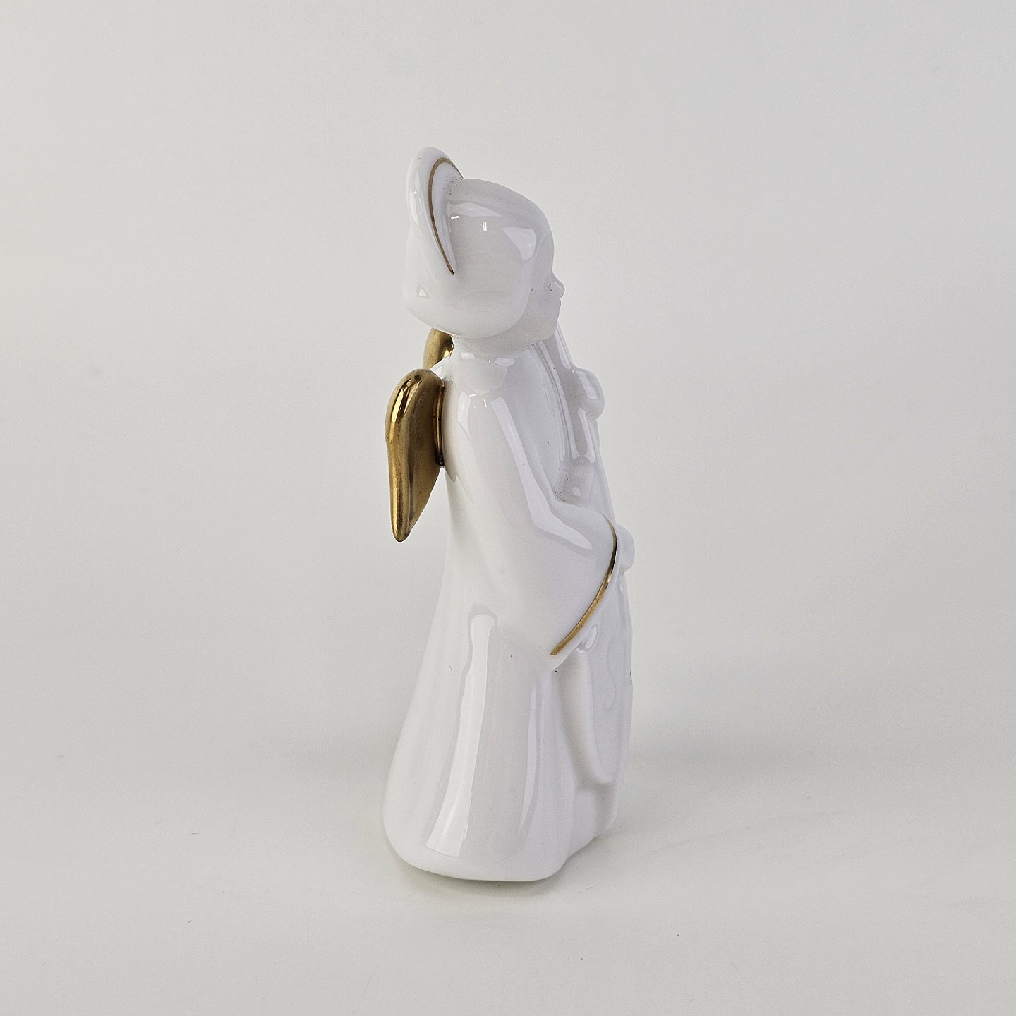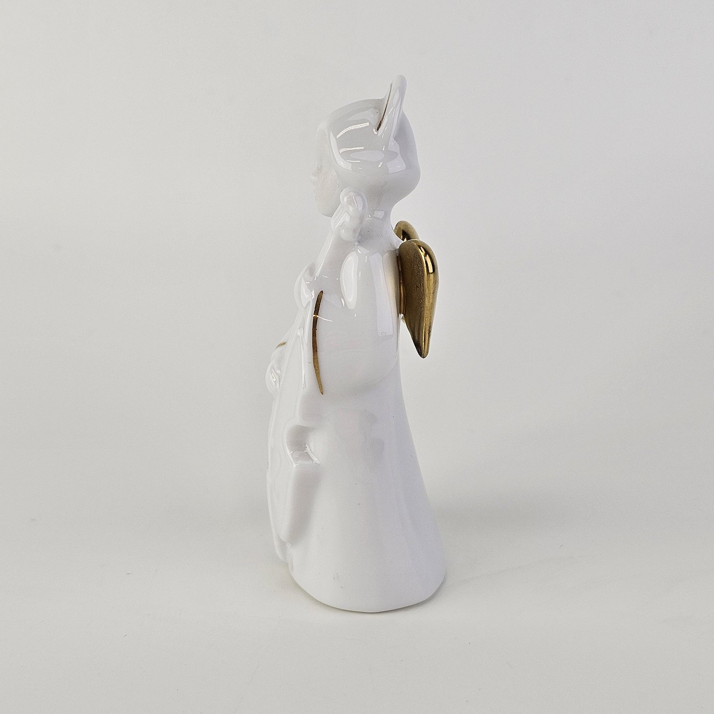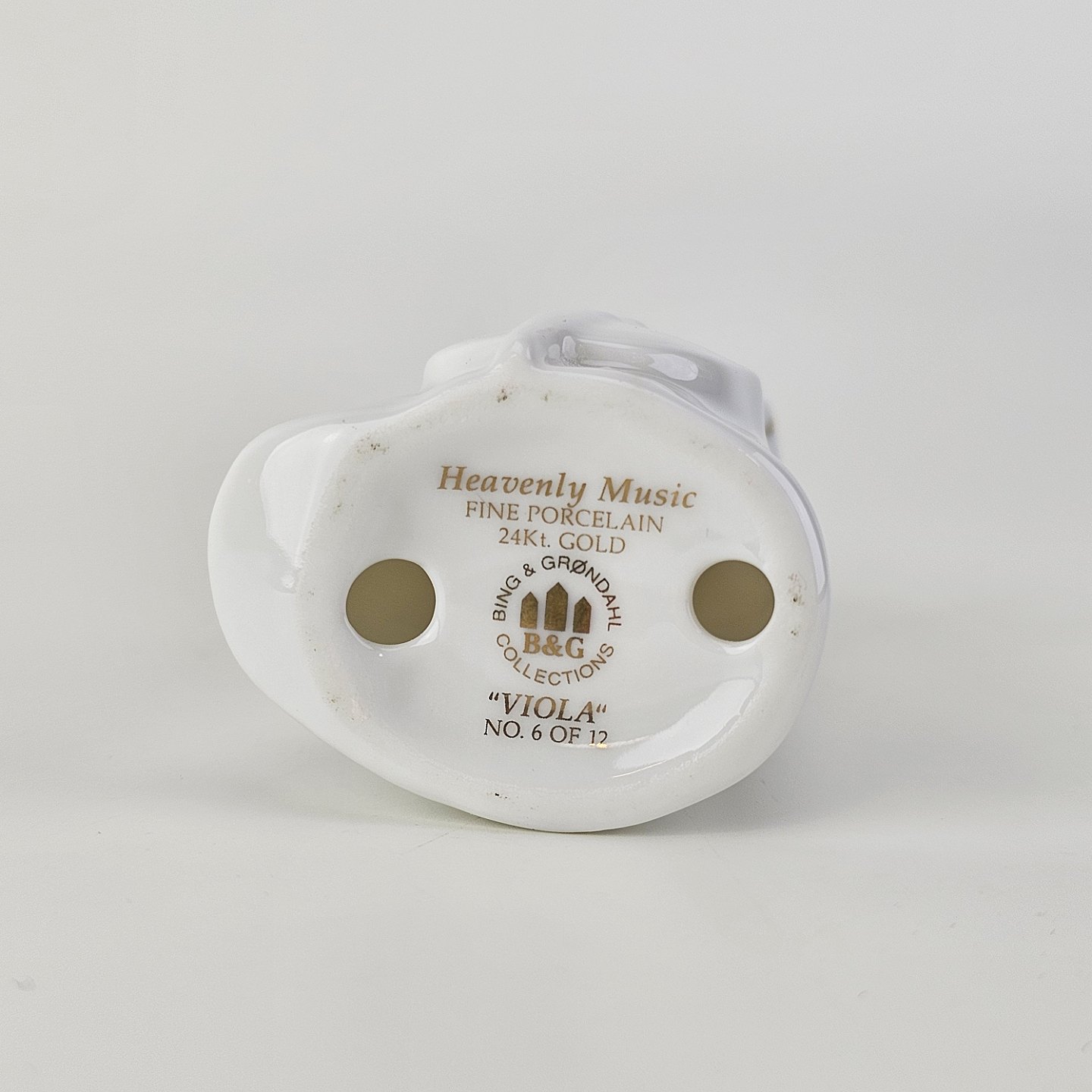 Figur med motiv af en engel som spiller på viola. Figuren er i hvidt porcelæn med forgyldte vinger og detaljer i 24 karat guld.6 af 12 i serien Heavenly Music med titlen Viola