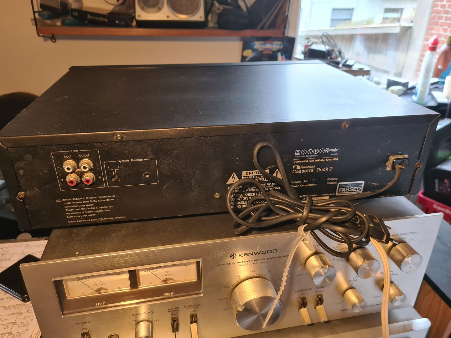 Kassettebåndoptager fra Nakamichi model Cassettedeck 2. Testet og virker fint. Fremstår pæn uden de store brugsspor.Højde 11cm. Bredde 43 cm. Dybde 33 cm.
