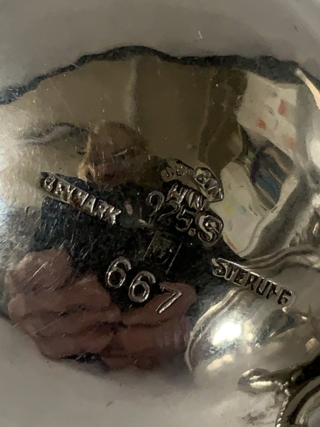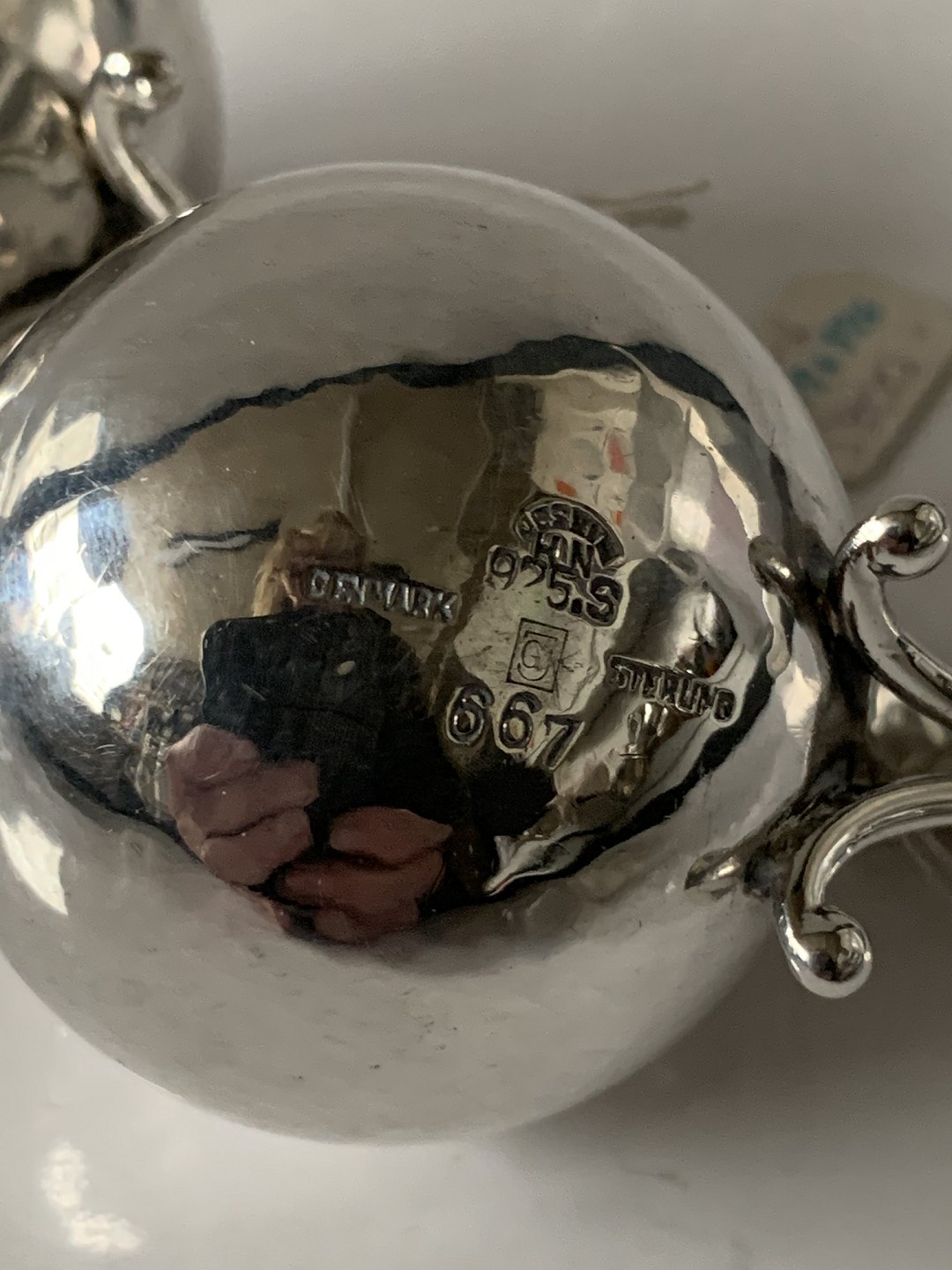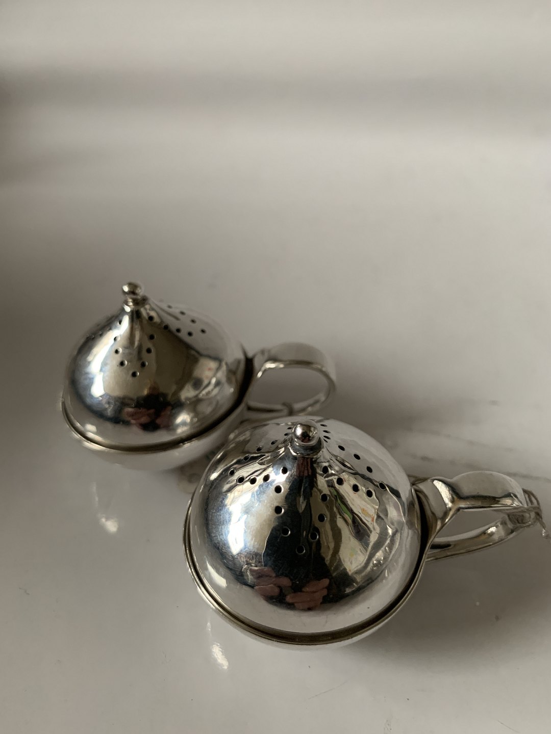Georg Jensen. Salt- og peberbøsse i sterlingsølv 667.Tegnet af Harald Nielsen (1892-1977)