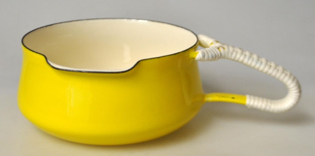 Quistgaard, Jens Harald (1919 - 2008) Danmark: Smørnæb. Kobenstyle. Gul emalje. Stemplet. L.: 18 cm. Dia: 11.5 cm.Fremstår ubrugt!
