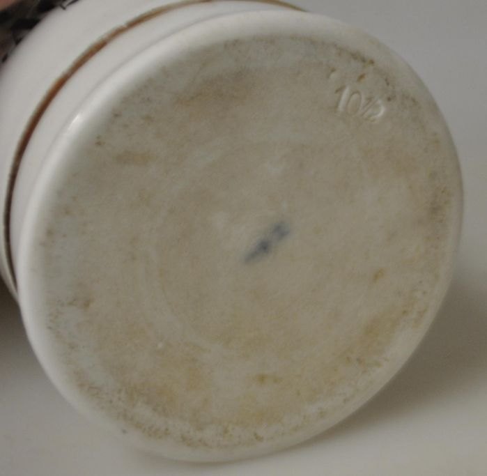 Pharmacy jar with brass lid, 19th century. White porcelain with black text. Stamped. H. 10.5 cm.Provenance: The now closed Swan Pharmacy in Randers.
