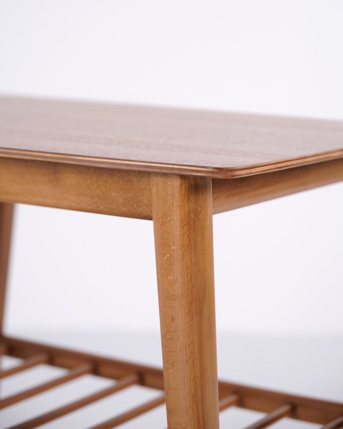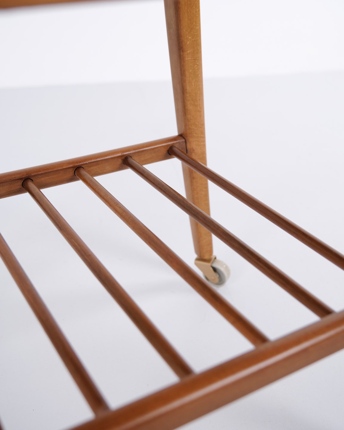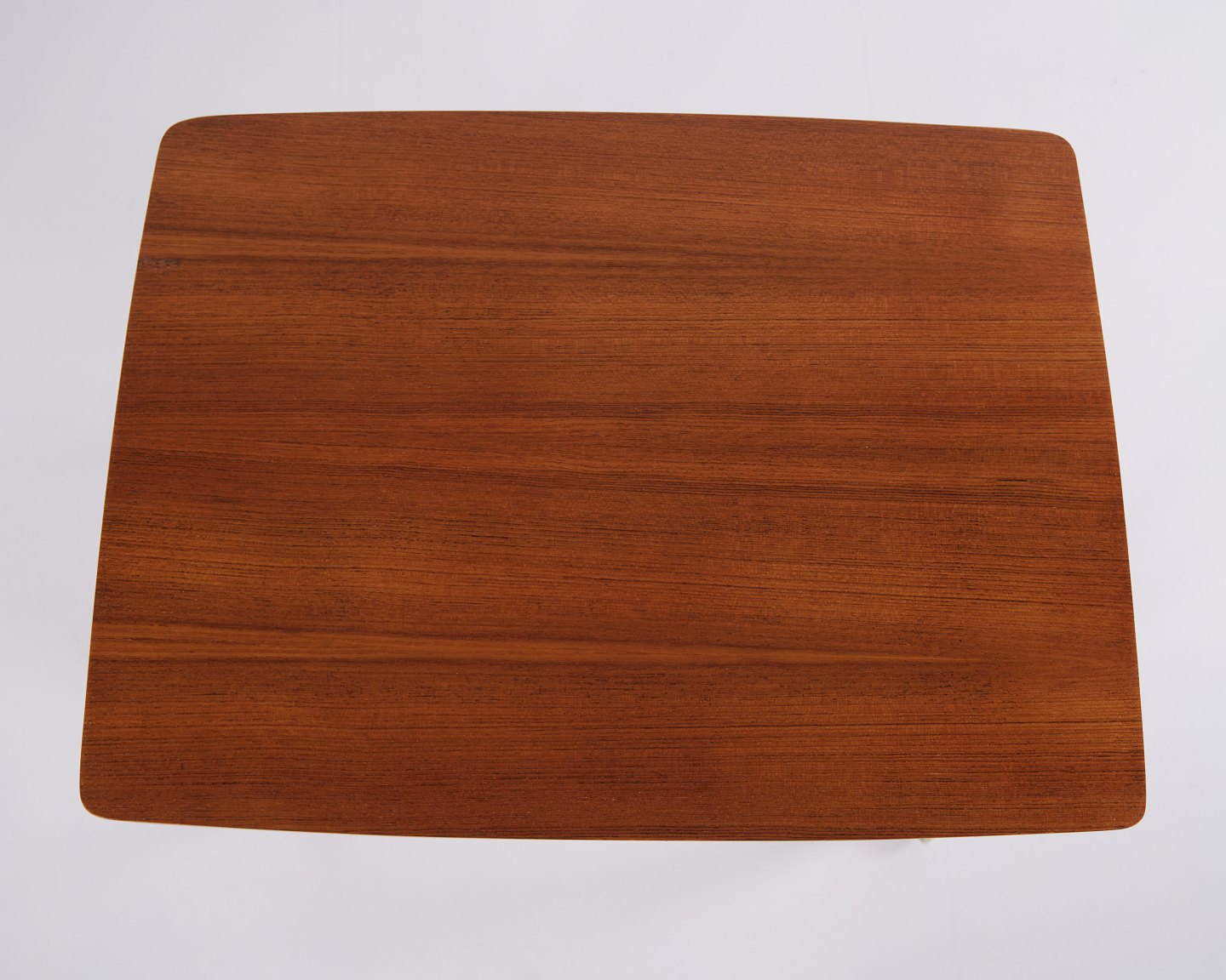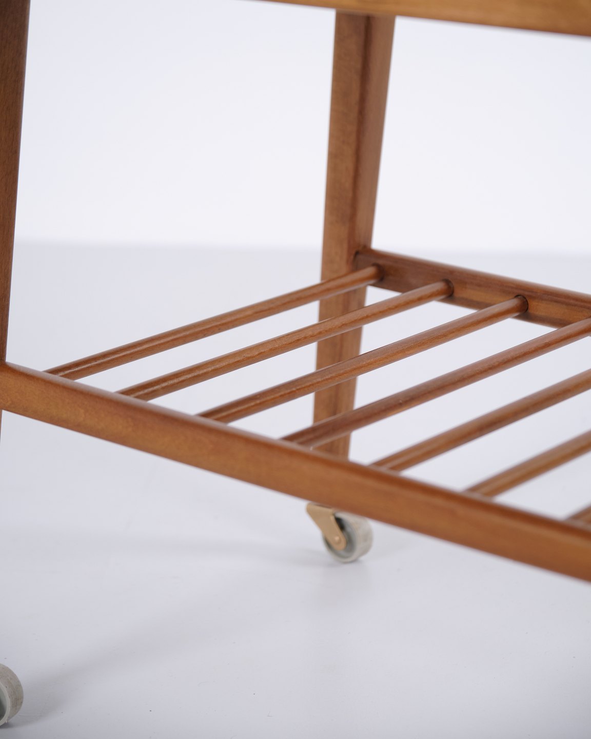 Sidebord fra 1960’erne i teaktræ med hylde og hjul. Klassisk dansk design.— Oprindelse: Danmark
