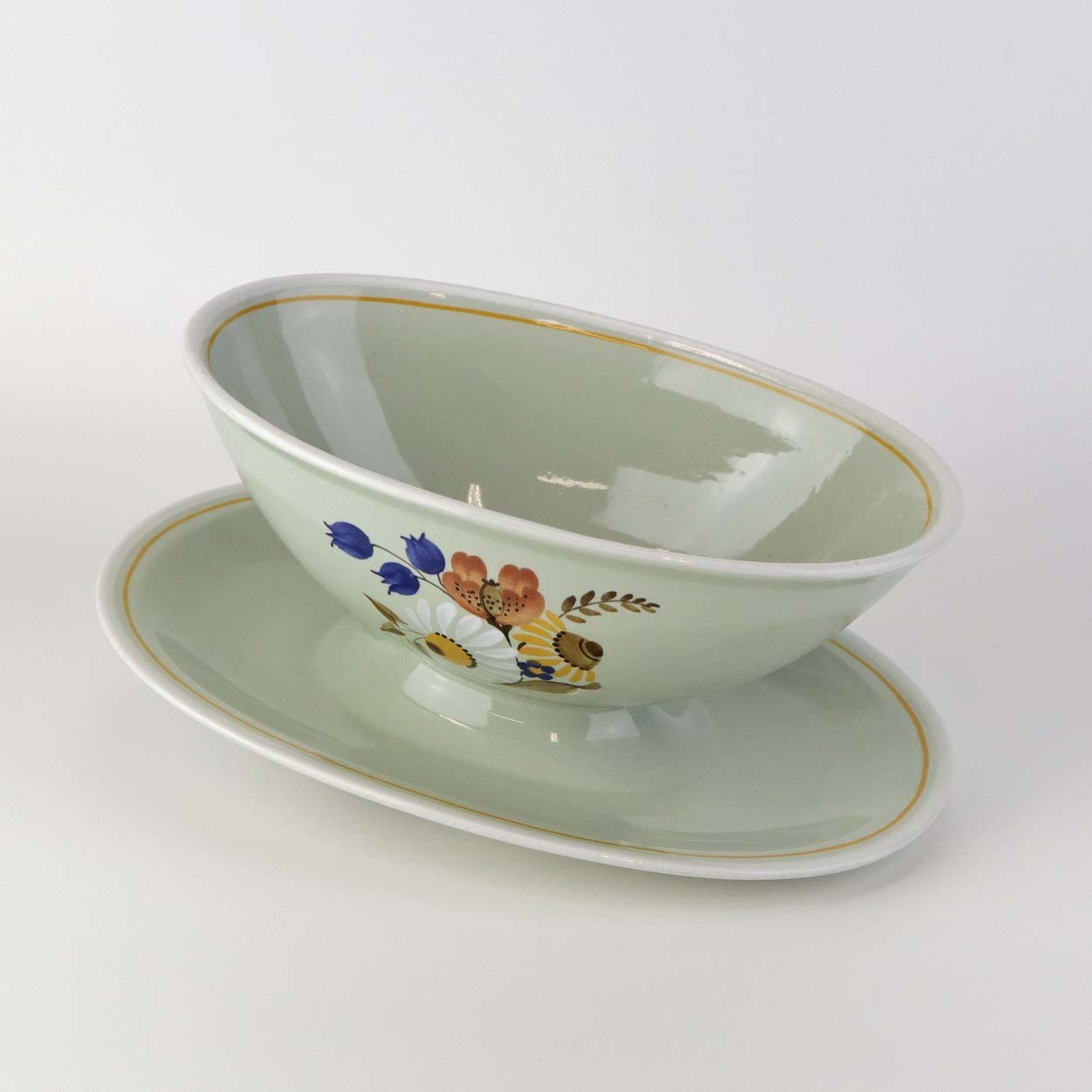 Sovseskål med fast bund i fajance fra stellet Frederiksberg.Formgiver Nils Thorsson
