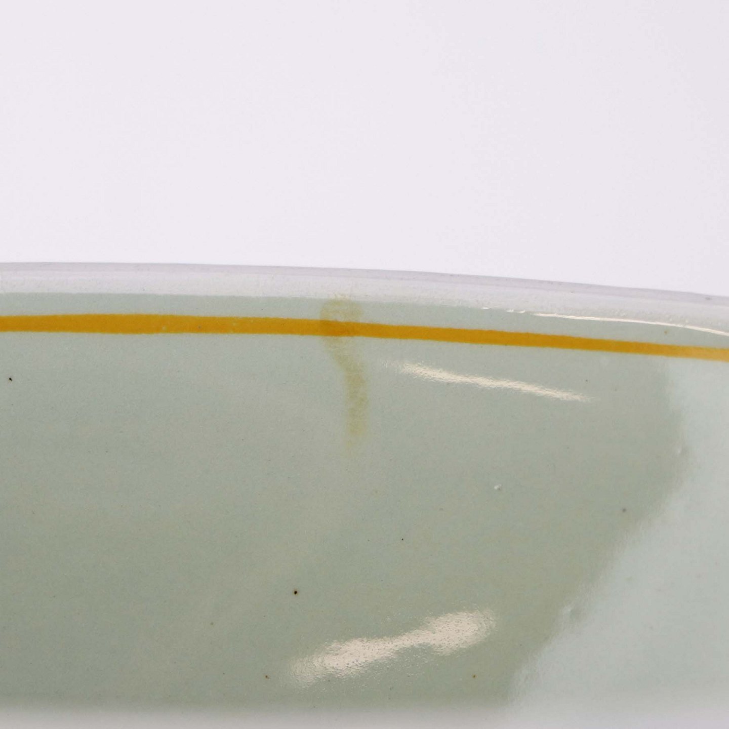 Fremstår med mindre ridse i glasuren i bunden samt brugsspor ved topkanten.