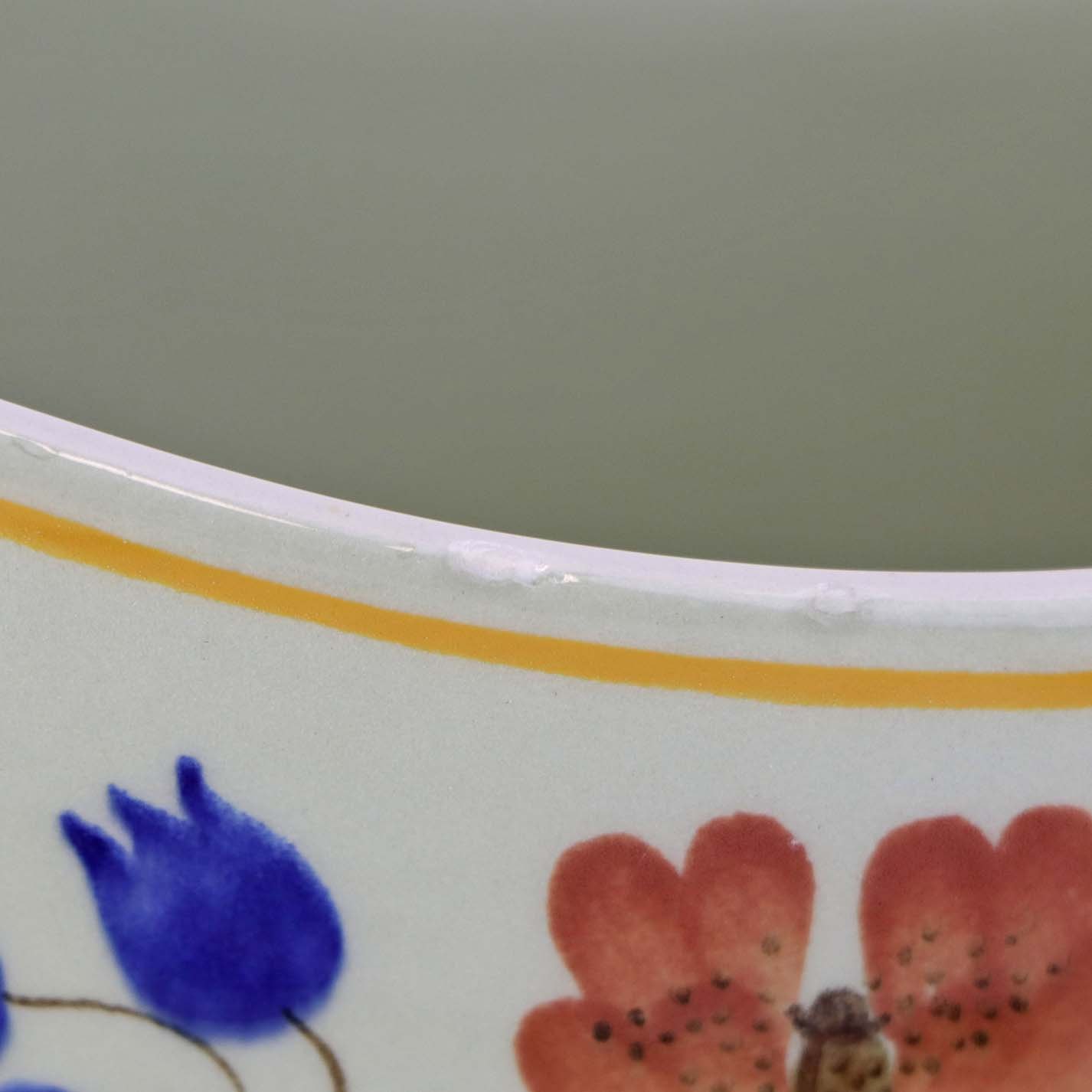 Stellet er fremstillet i perioden 1934-1963 i stelform E. Fajancestel i lys grøn farve dekoreret med forskelligfarvede blomster og gul bort.