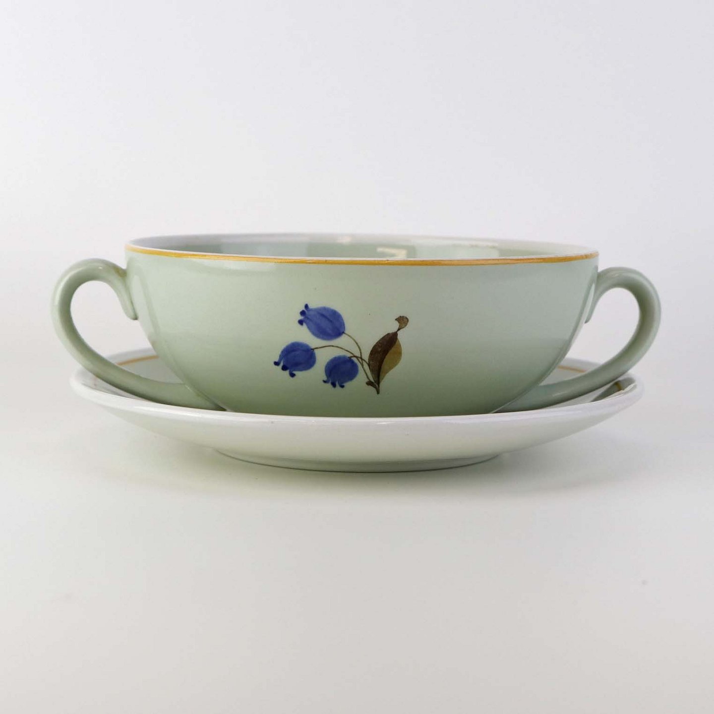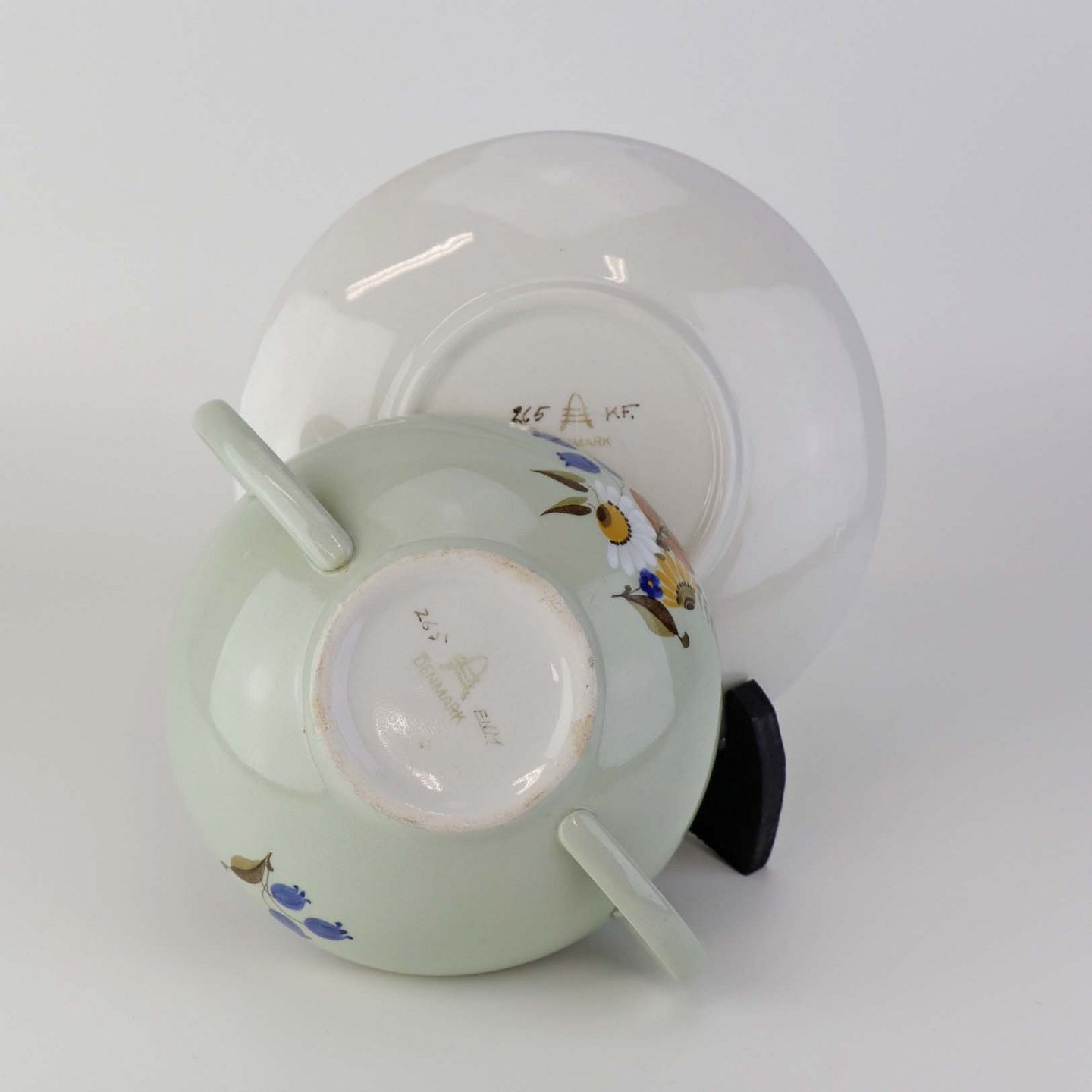 Suppekop med underkop i fajance fra stellet Frederiksberg. Nr. 265Formgiver Nils Thorsson