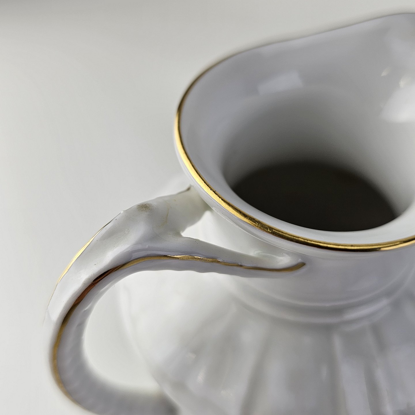 Eremitage er porcelæn dekoreret med hvidtjørn og guldkant