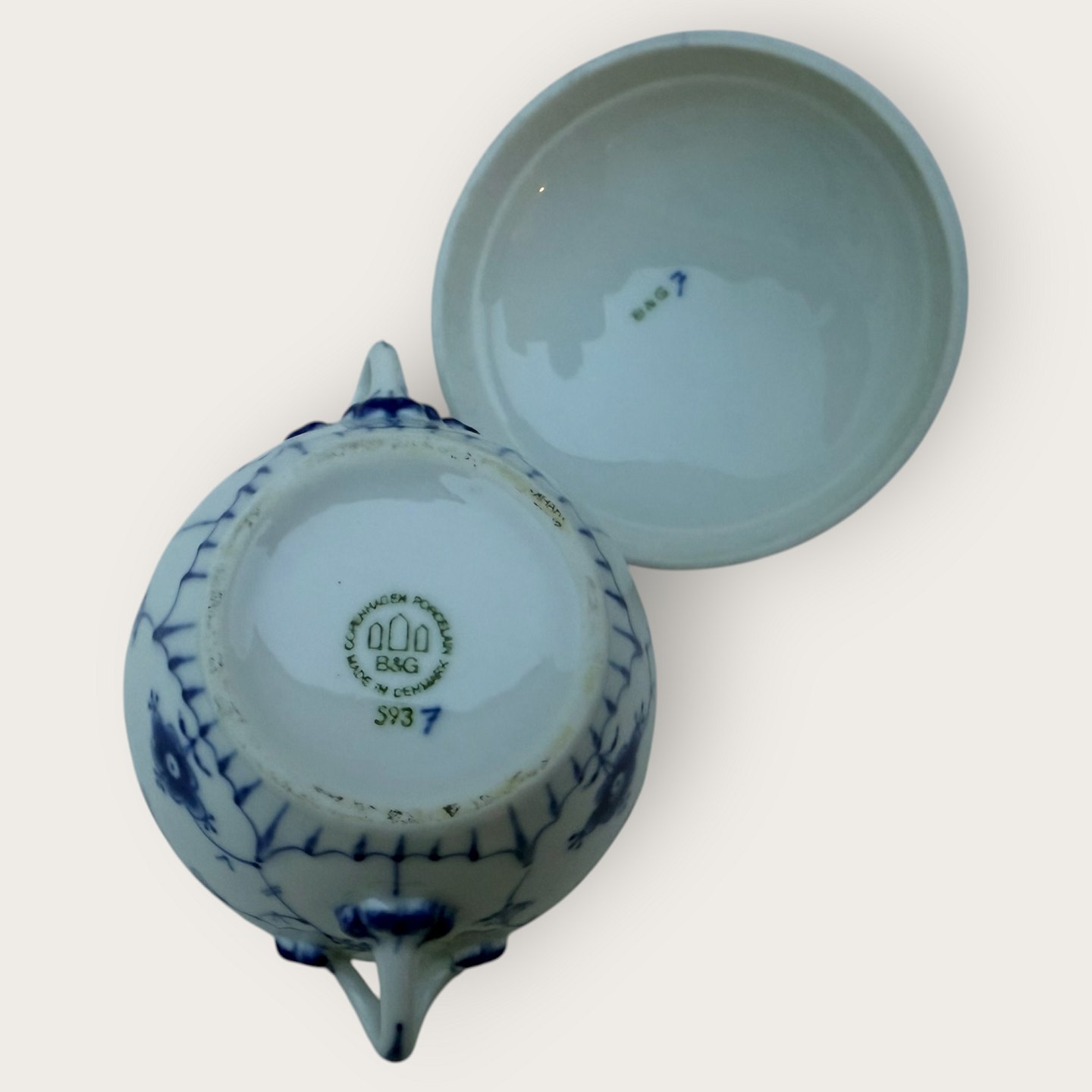 Bing & Grondahl, Blue enamel / Blue Fluted, Sugar bowl #593, 12cm wide, 10cm high, 1st grade, *Perfect condition*Stock: 1