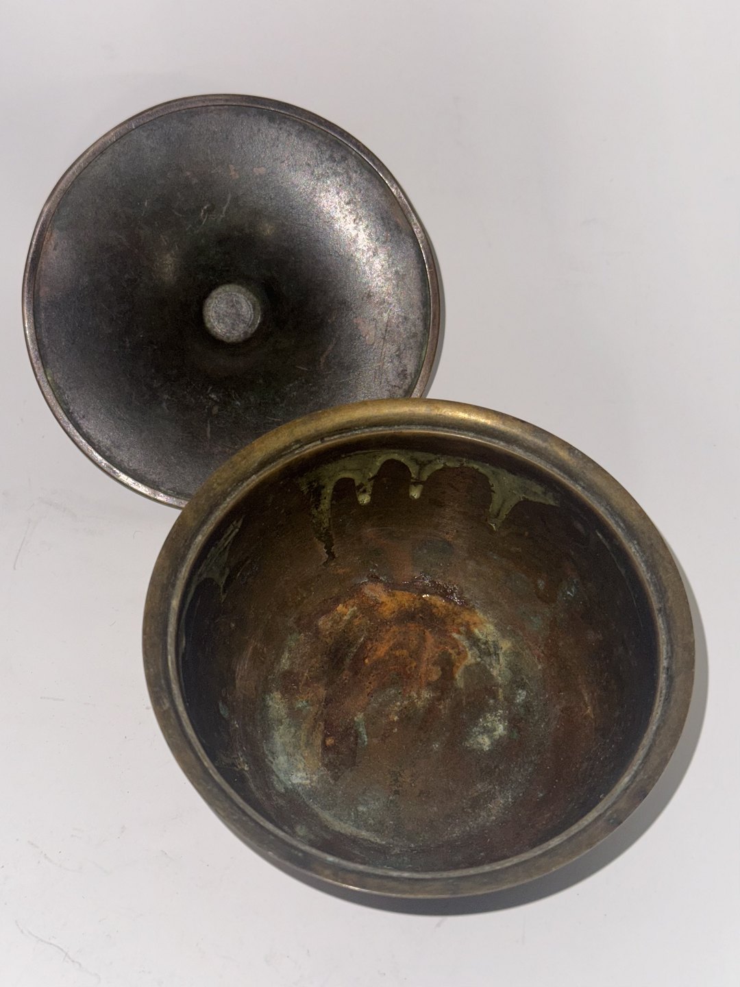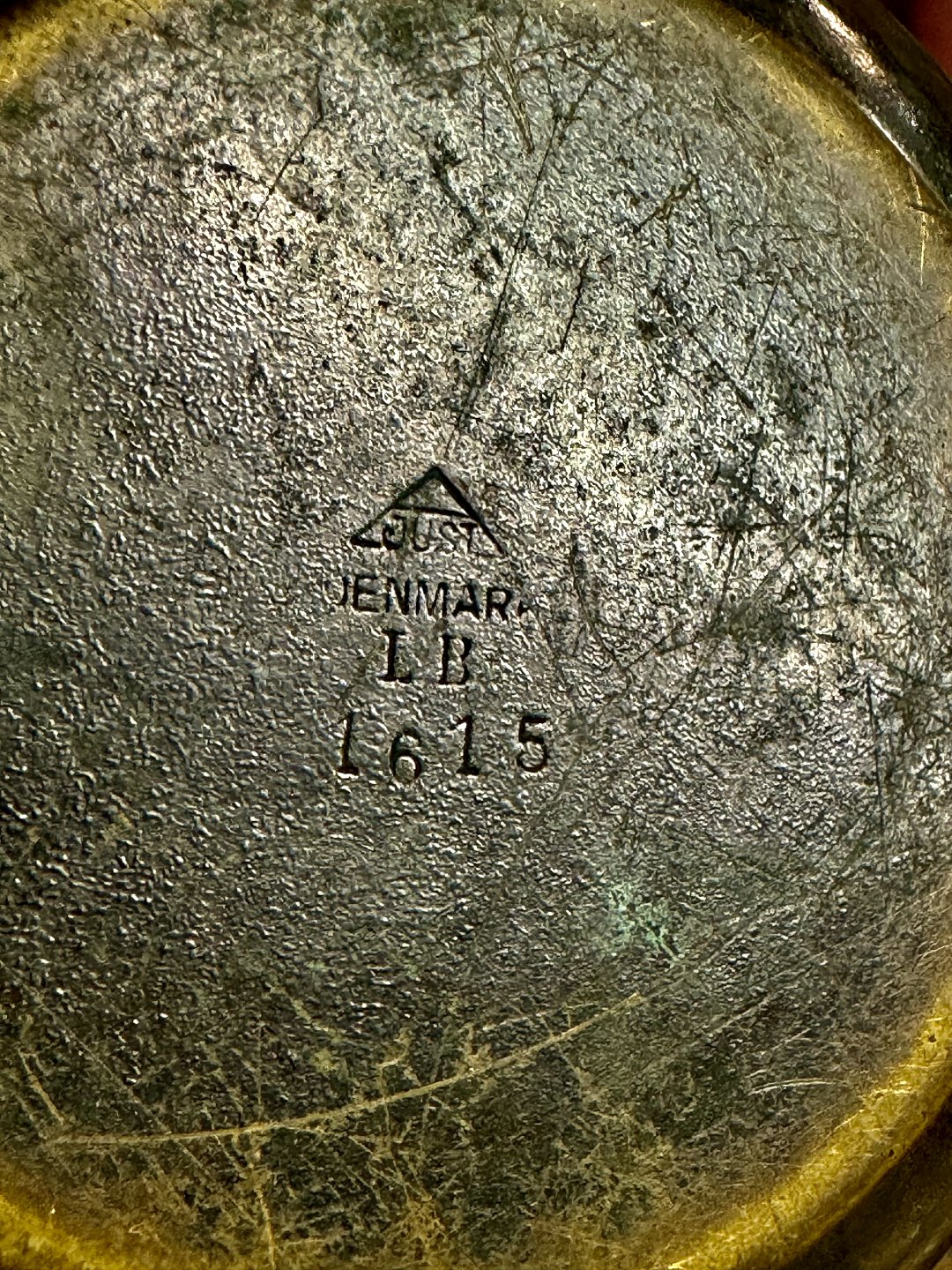 Bronzepatineret just Andersen skål. Fremstår i god stand med almindelige brugsspor. Fremstillet omkring 1940. Fabriksmærket på bunden med det velkendte fabrikslogo, modelnummer 1615 samt LB, der står for Let Bronce. H. 7 cm Ø. 11 cmv/ Jesper Reutemann