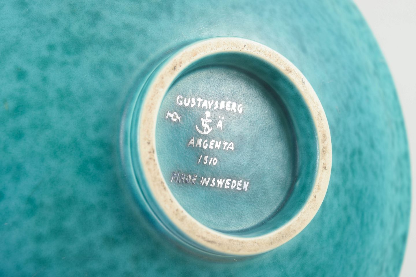 Wilhelm Kåge (1889–1960) var en af de mest indflydelsesrige designere ved Gustavsberg, hvor han fra 1917 til 1949 fungerede som kunstnerisk leder. Han skabte en lang række ikoniske serier, herunder “Argenta” – introduceret i 1930’erne – hvor kobbergrøn glasur og sølvindlæg blev forenet i raffinerede, dekorative former. Serien blev et symbol på svensk Art Deco og modernisme, og mange af stykkerne er i dag eftertragtede samlerobjekter.